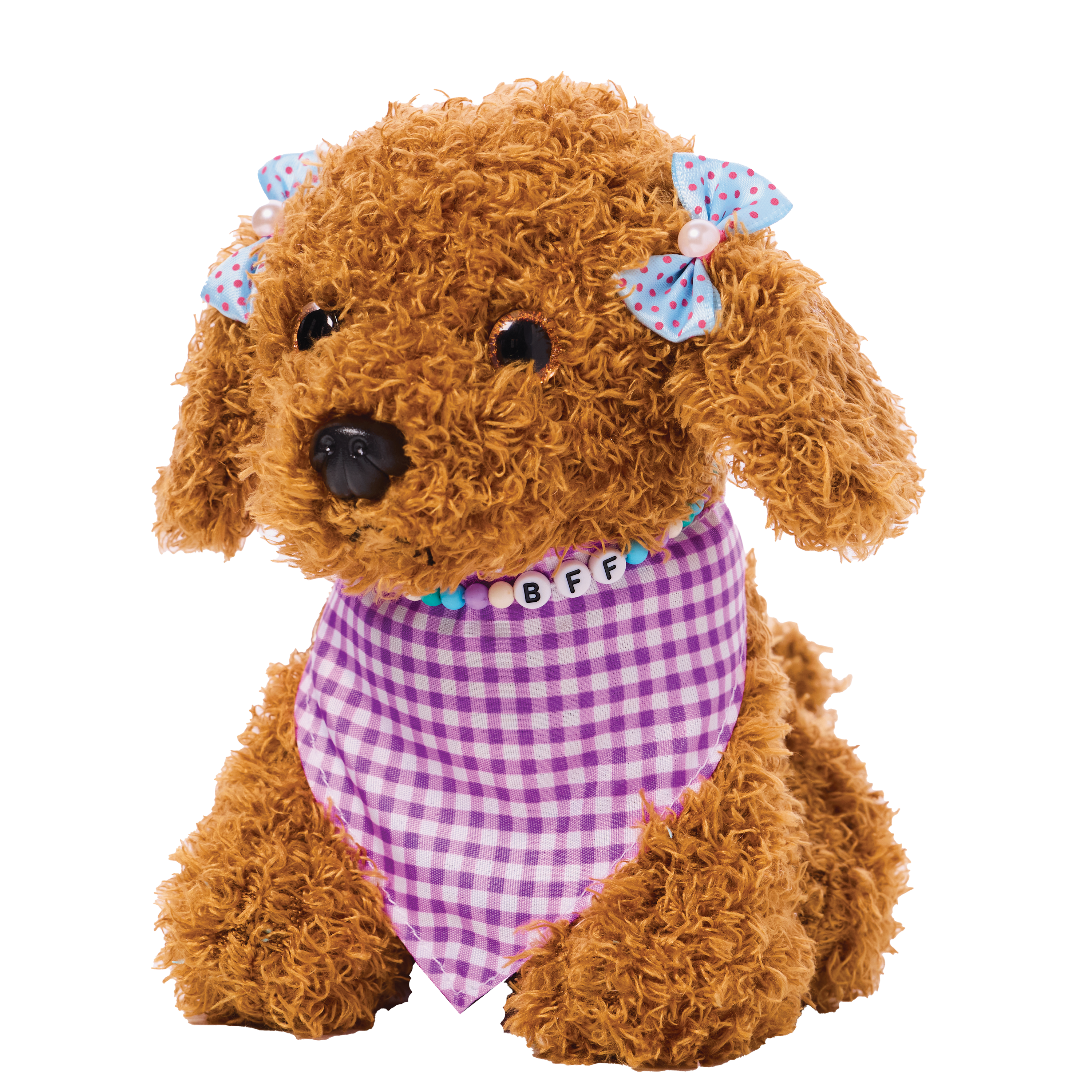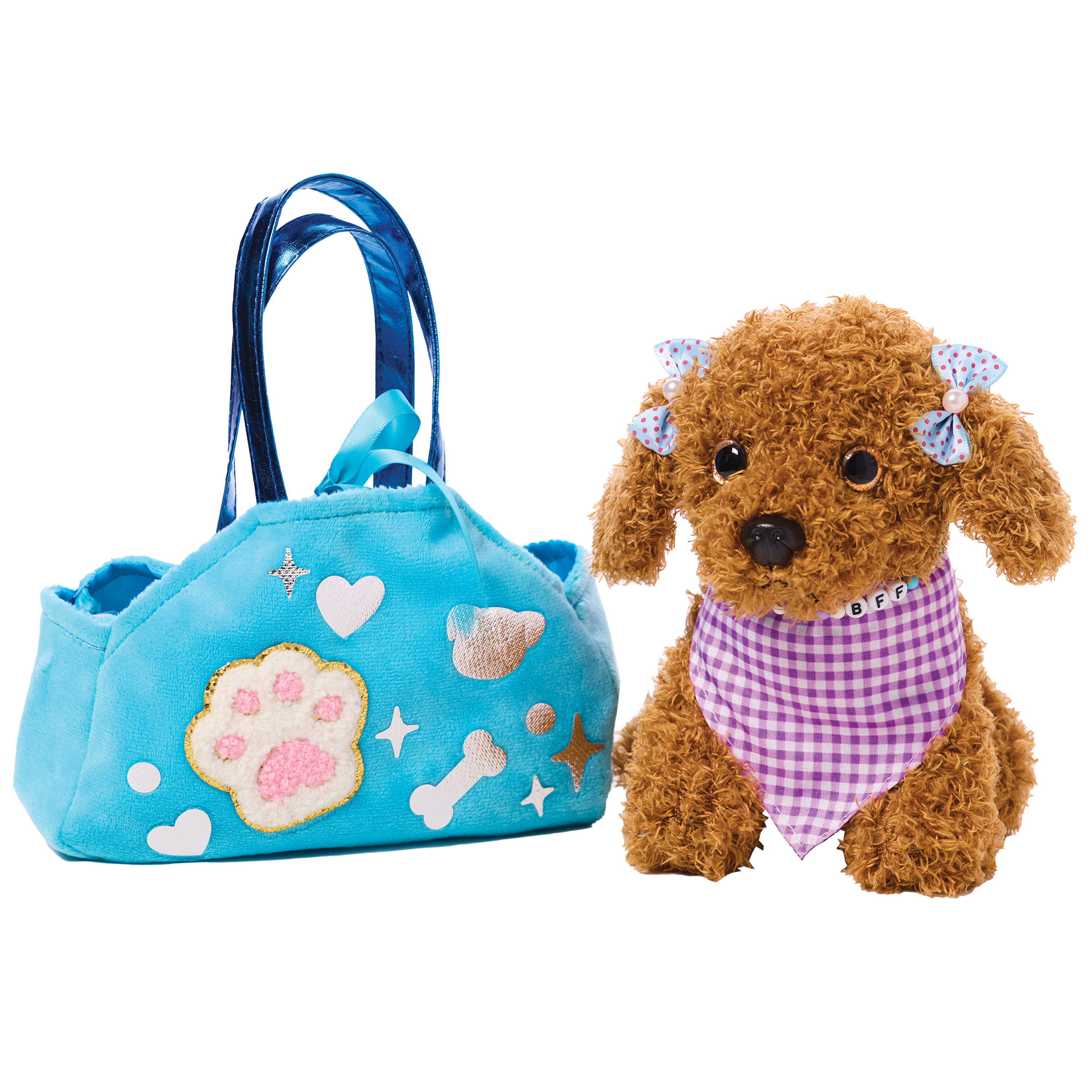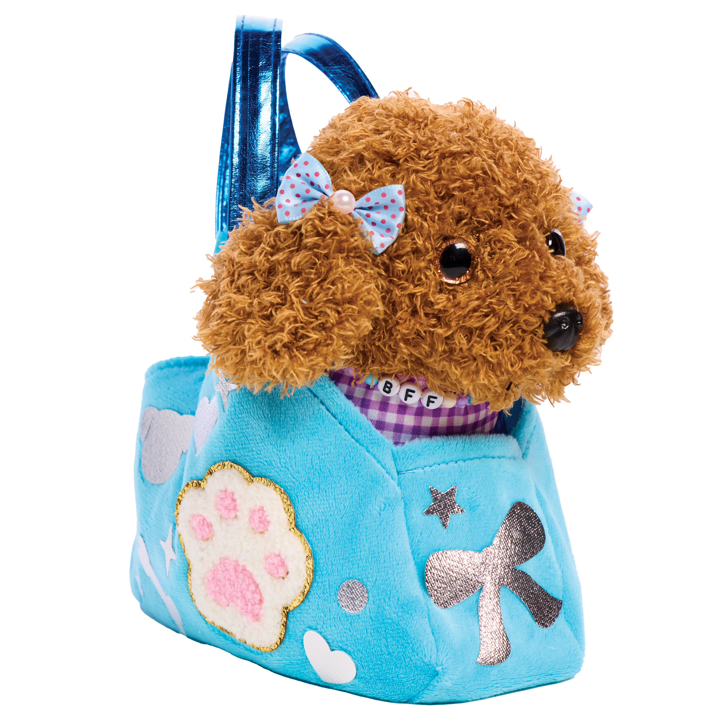 Decorate and accessorize your diva doggie's posh purse, velvet collar, satin leash, velvet cape, satin bows and dog bone name tag. Quick and easy peel-and-press felt accents and rhinestones means no glue or scissors are needed. Develops fine motor skills, fosters imaginative play and promotes sensory development. Designed to comfort and cuddle, your completed purse measures 7" w x 5" h x 2-1/2" d. Dog measures 6-1/2" w x 6" h.