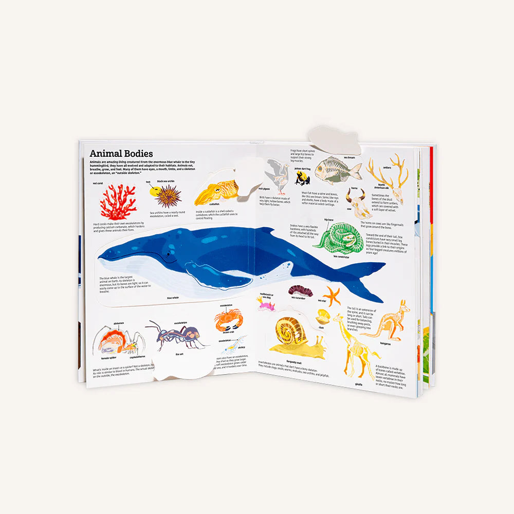 Creatures of land, sea, and air—including elephants, spiders, snakes, falcons, and whales—fill the pages of this interactive book, providing a fascinating overview of how animals grow, see, hear, move, and more! With detailed information thoroughly researched and vetted by an industry professional, the book includes more than 50 flaps, pop-ups, pull-tabs, and rotating wheels.