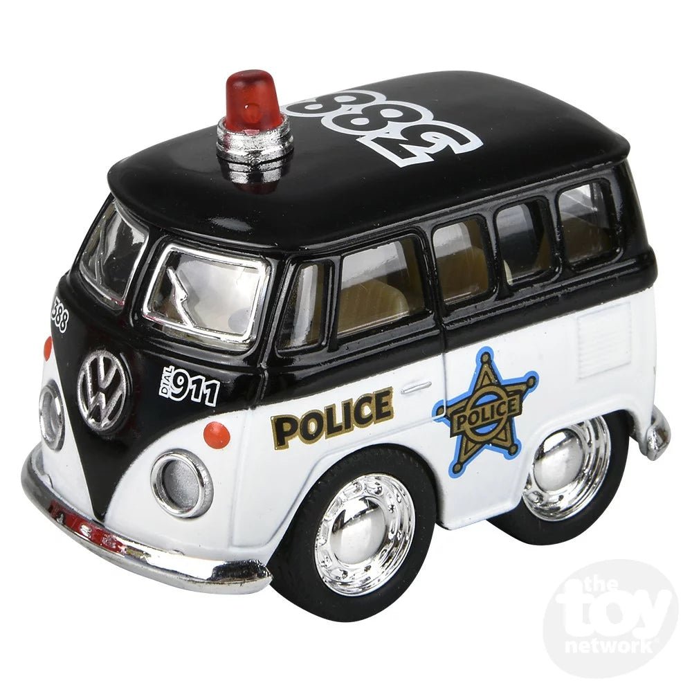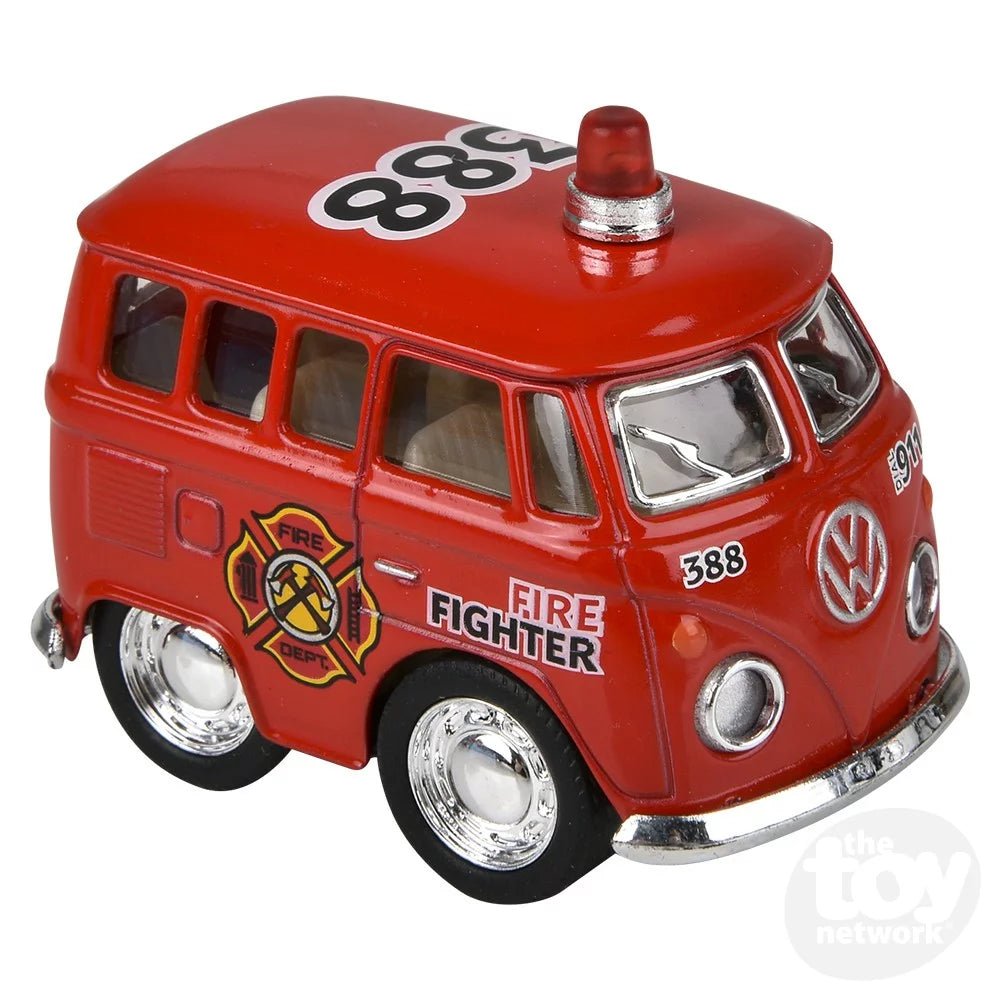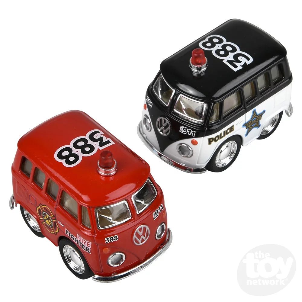 Our 2" Diecast Pull Back VW Mini Police & Firefighter Buses are made from authentic diecast metal and feature a pull-back action. Available in multiple styles.