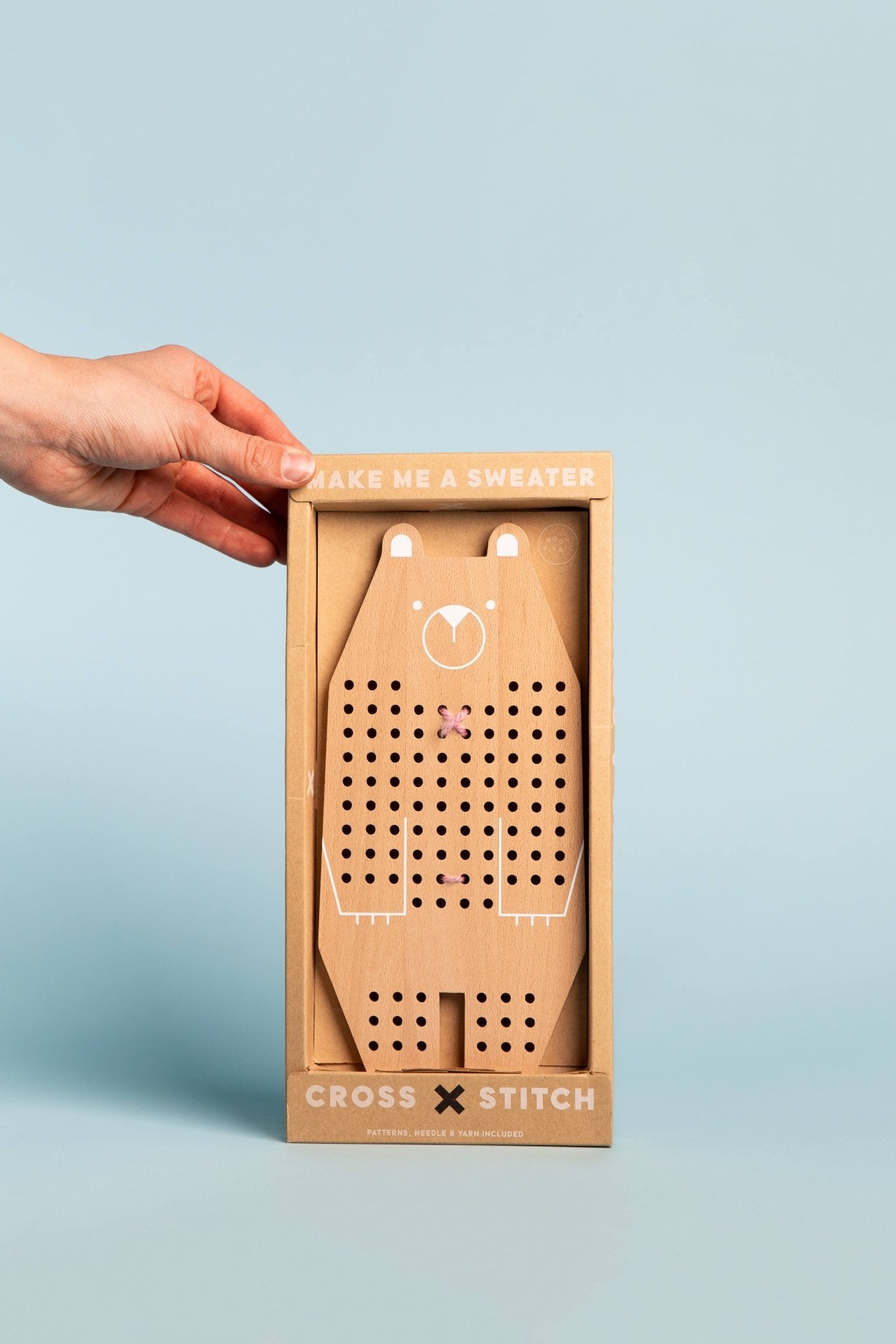 Bear: This bear needs help making a sweater before it gets too cold outside. This fun craft is perfect for your creative kids. It comes with 2 tones of yarn, a needle, and patterns to help you make the best sweater for the bear!