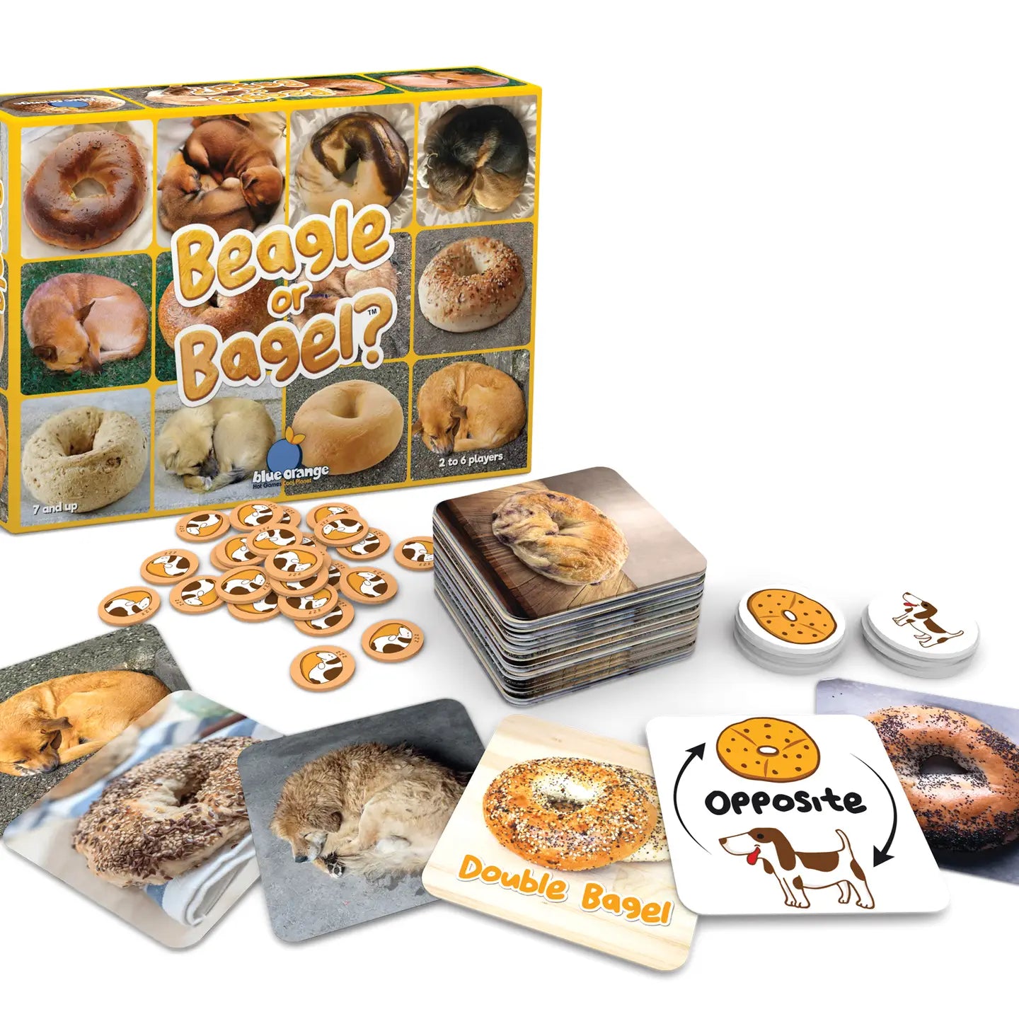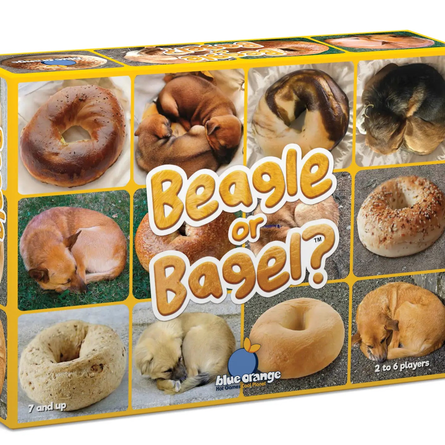 Is it a beagle or a bagel? Who knew sleeping dogs and bagels could have such striking similarities? Flip cards fast and be the first to call out "Beagle" or "Bagel" depending on which one is showing the most on the table…after a while you won't know if you are looking at a furry friend in a ball, or a yummy bread roll! This goofy card game offers three ways of playing to challenge your visual perception in fun and unpredictable ways!