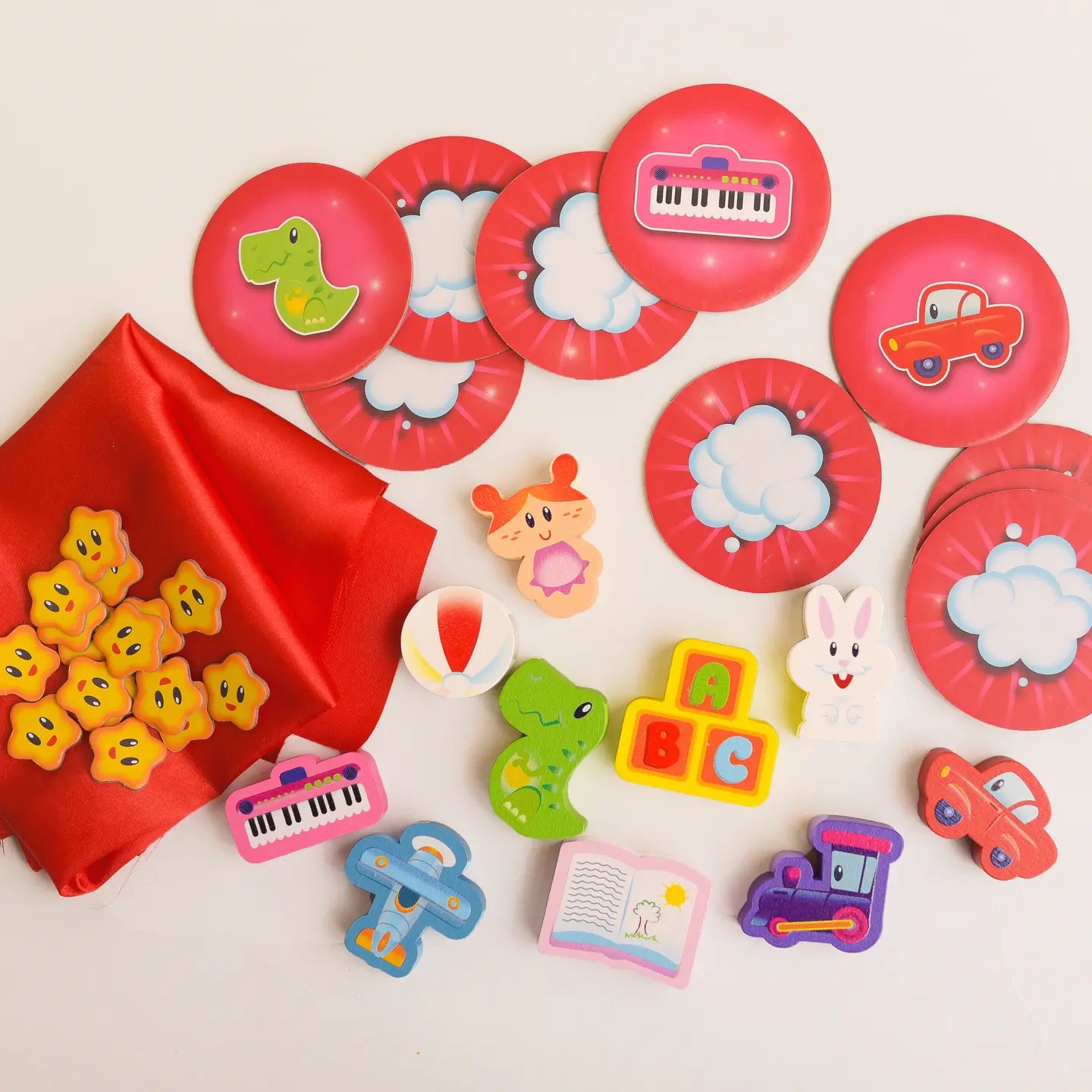 Find the missing object hidden in the magic scarf! Come one, come all! The mini-magicians’ competition is about to start! Do you see the toys, the image tiles and the red magic scarf? Grab a seat and get ready to show off your skills. Will you impress your friends with the famous disappearing scarf trick? Now is the perfect time to put all your training to good use! Now is the perfect time to put all your training to good use!