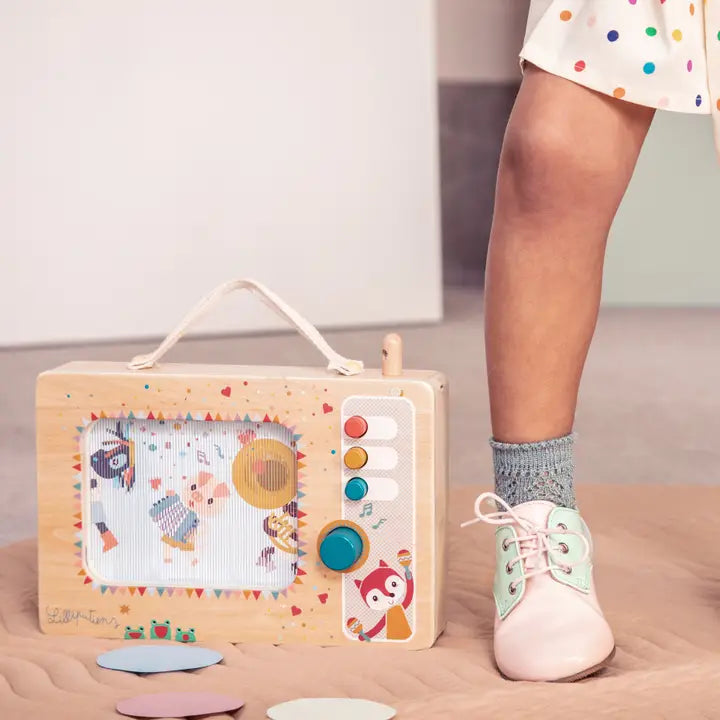 A quick turn of the button on the music box, and the orchestra is in full swing, striking up a joyful tune. Thanks to the handle, you can take this beautifully illustrated music box wherever you may go.