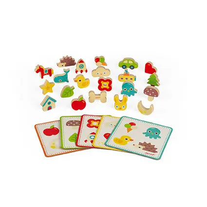 Put your hand in the bag and try to be the first to find the 4 pieces indicated on the game card, using only your sense of touch! But beware the “trick” piece!