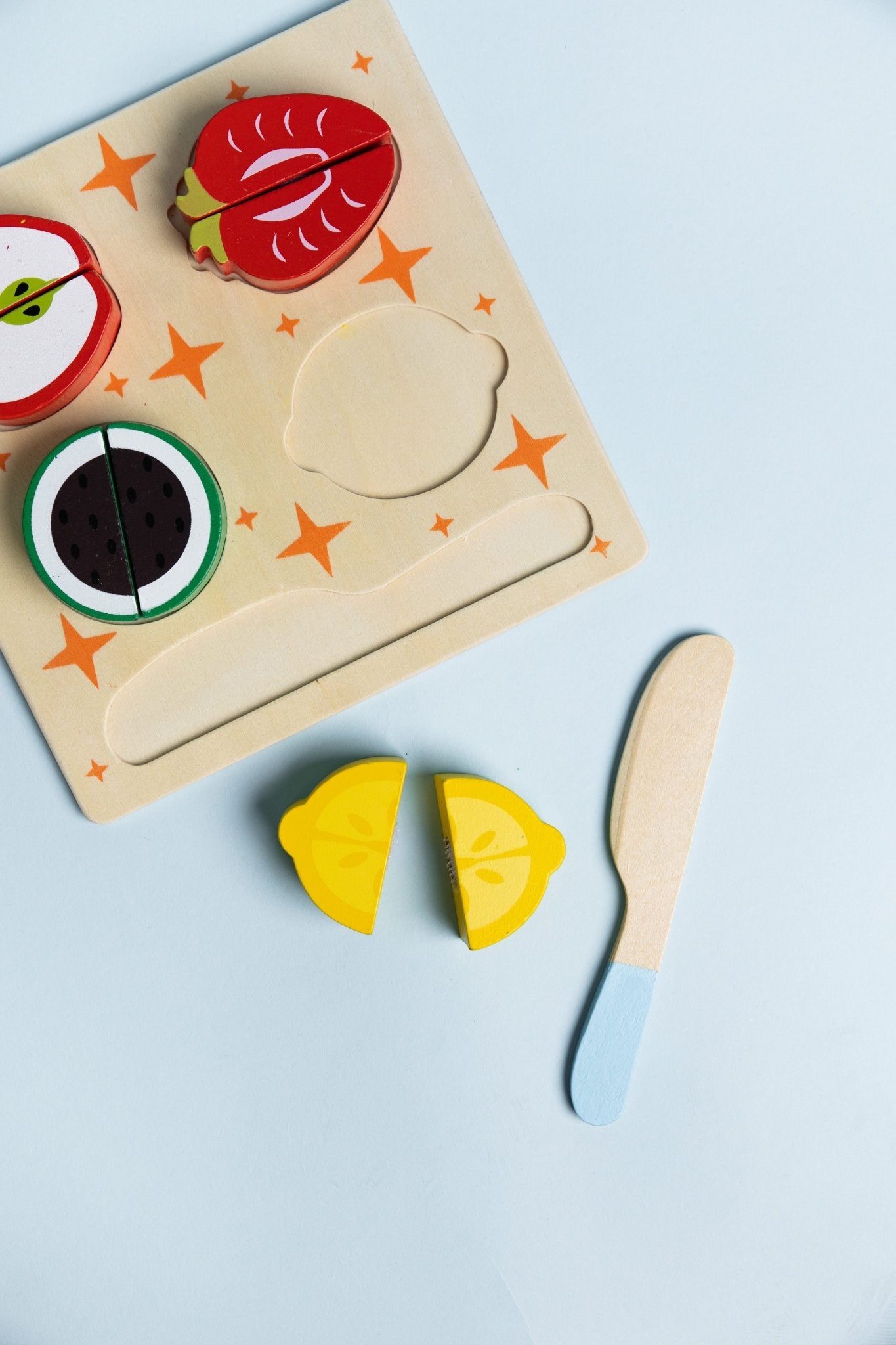 - Fruit Star Set includes: Red Apple, Watermelon, Lemon, Strawberry, Wooden Knife and star decorated tray.