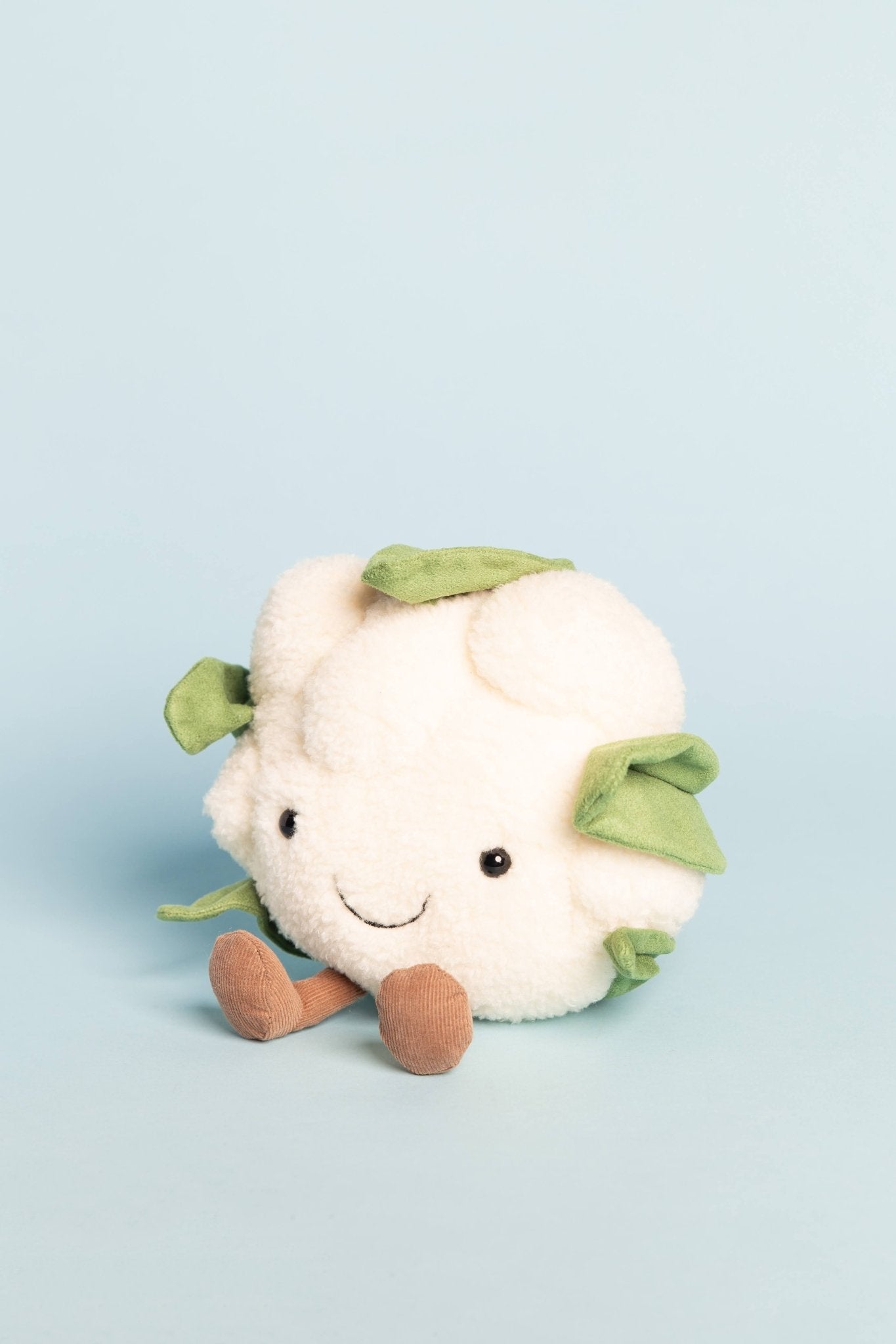 This bobble of goodness has fleecy florets, a cheery smile and cordy booties! This veggie's in vogue, with a funky jacket of foldy, suedey, stitchy leaves!