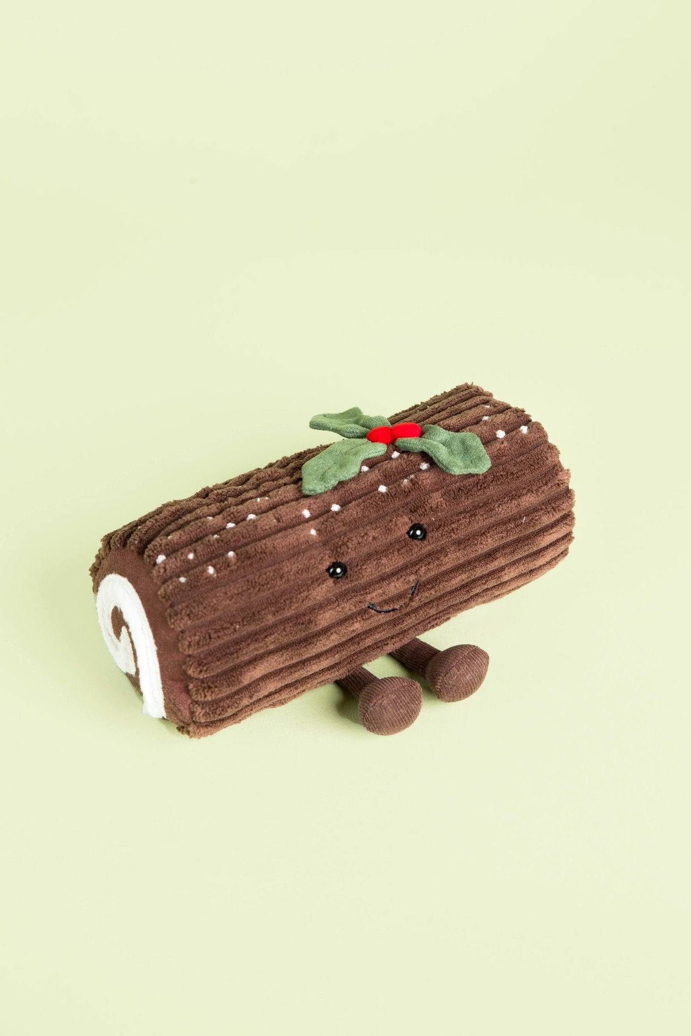 Jellycat's Amuseable Yule Log is a forest of joy! A roll of cordy chocolate softness with stitchy sugar, a little holly hat and bobbly cord feet, this silly sweetie is filled with creamy cuteness.