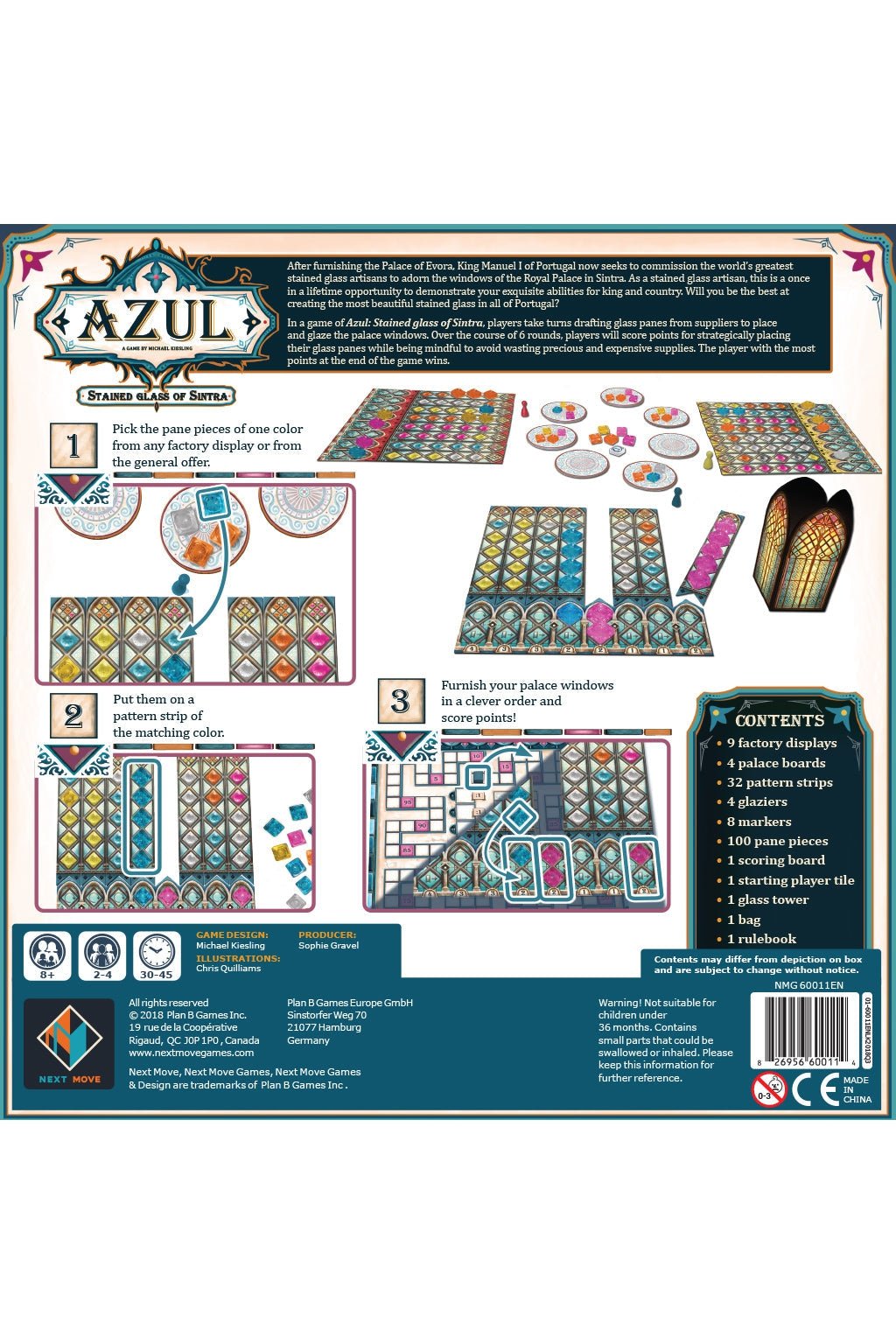 Enjoy hours of artistic fun with the Azul Board Game. Created by Michael Kiesling, Azul: Stained Glass of Sintra challenges players to carefully select glass panes to complete their windows while being careful not to damage or waste supplies in the process. The window panels are double-sided, providing players with a dynamic player board that affords nearly infinite variability!