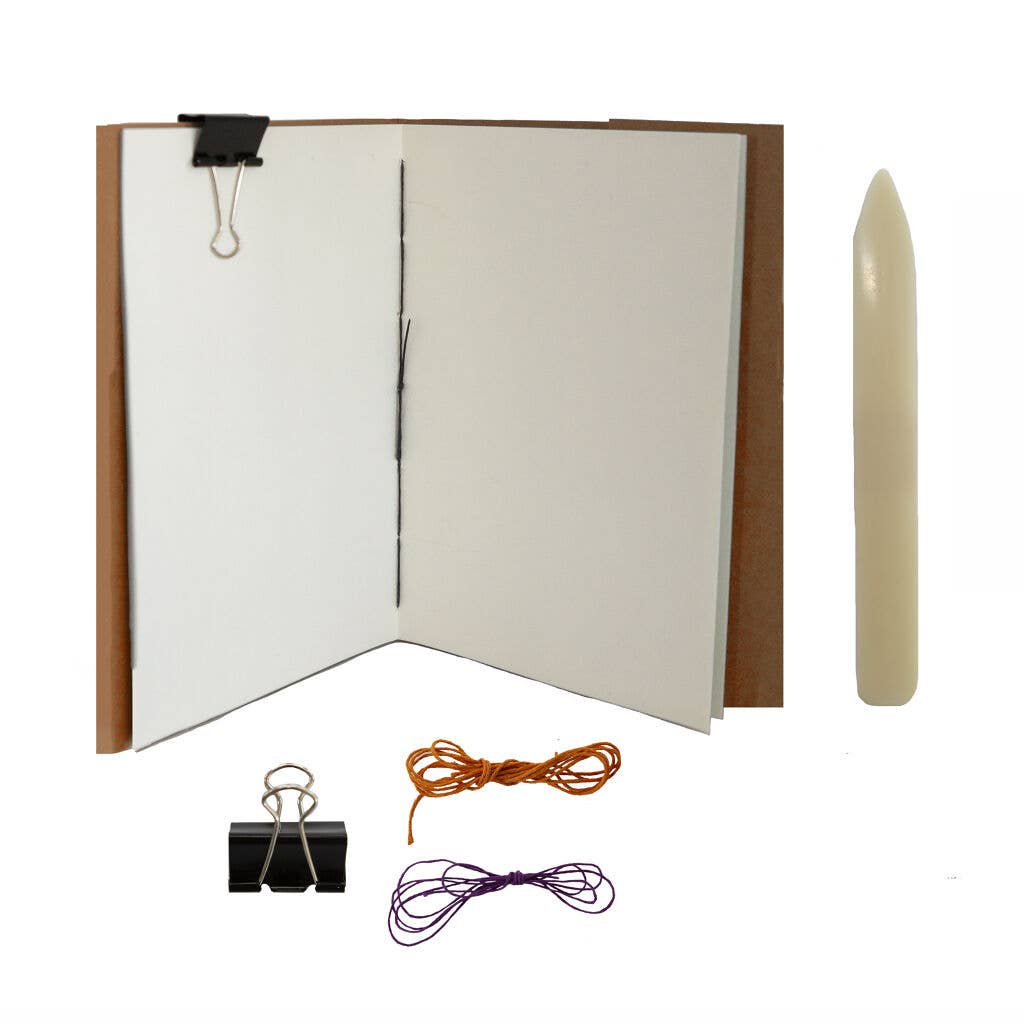 Learn the traditional style of japanese bookbinding with this diy kit. Includes instructions, 1x bone folder, 1x awl, 2x binder's clips, 3x waxed linen threads. 1x binder needle, 3 sets of 45 sheets (a4 size) paper, and 3 sets of semi-rigid (3 colors) covers. Designer: kdt Product measurement: (inner sheet) 11.7" x 8.3" (waxed linen thread) 40" Material: plastic, wood, metal, linen, paper