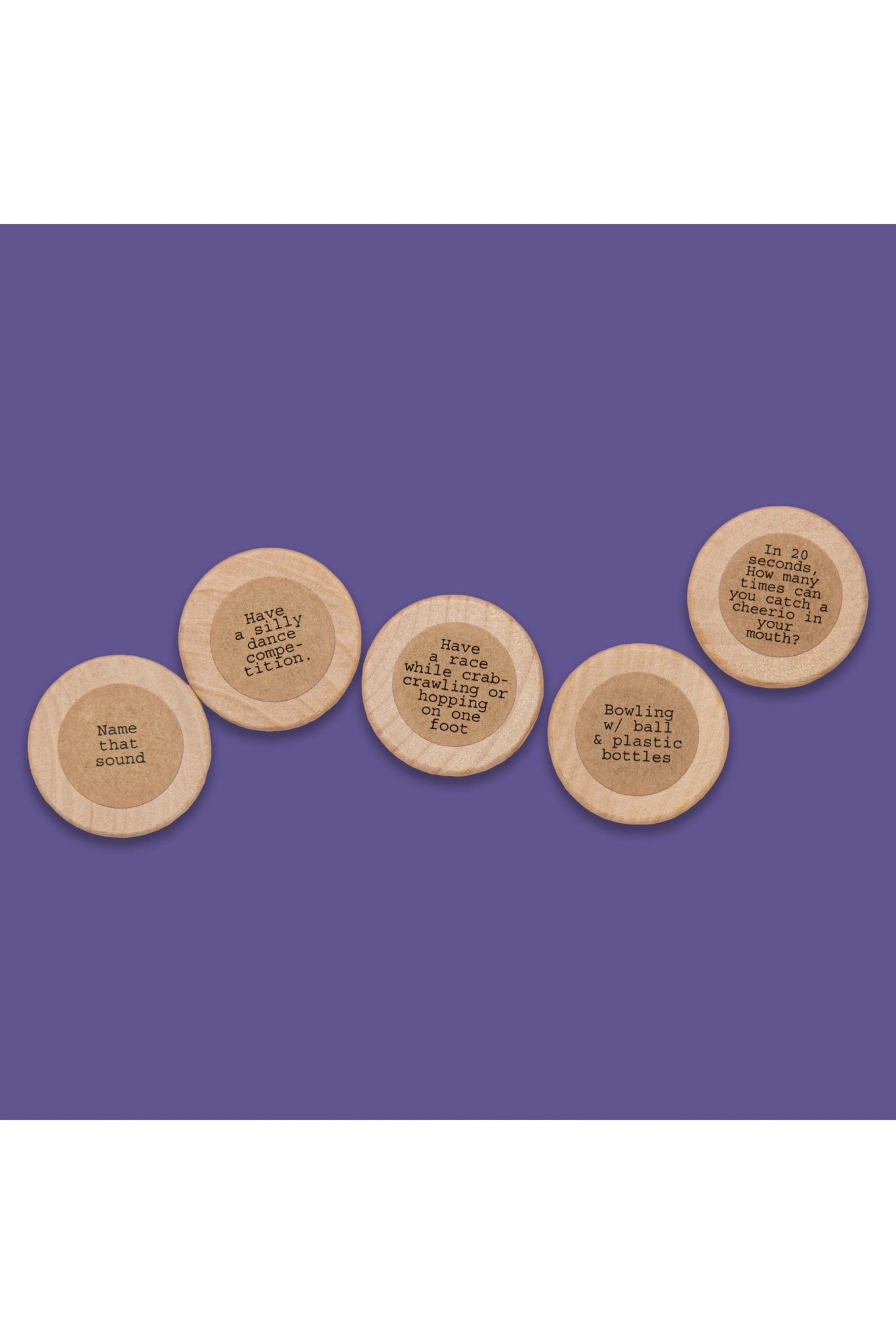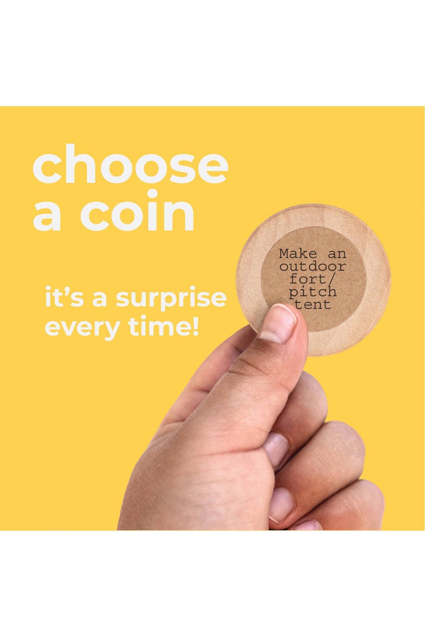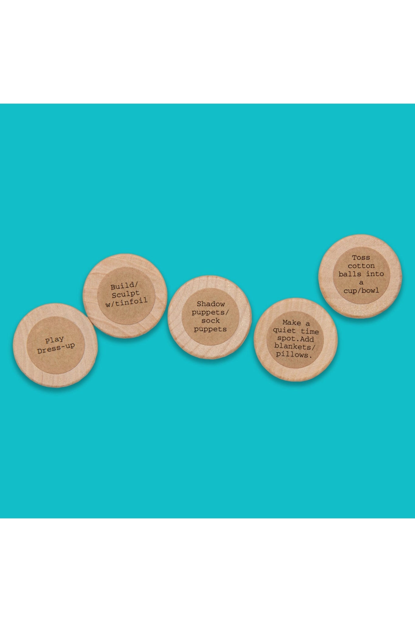 - COINS: 30 natural, wood coins, each measuring 1 ½ inches round