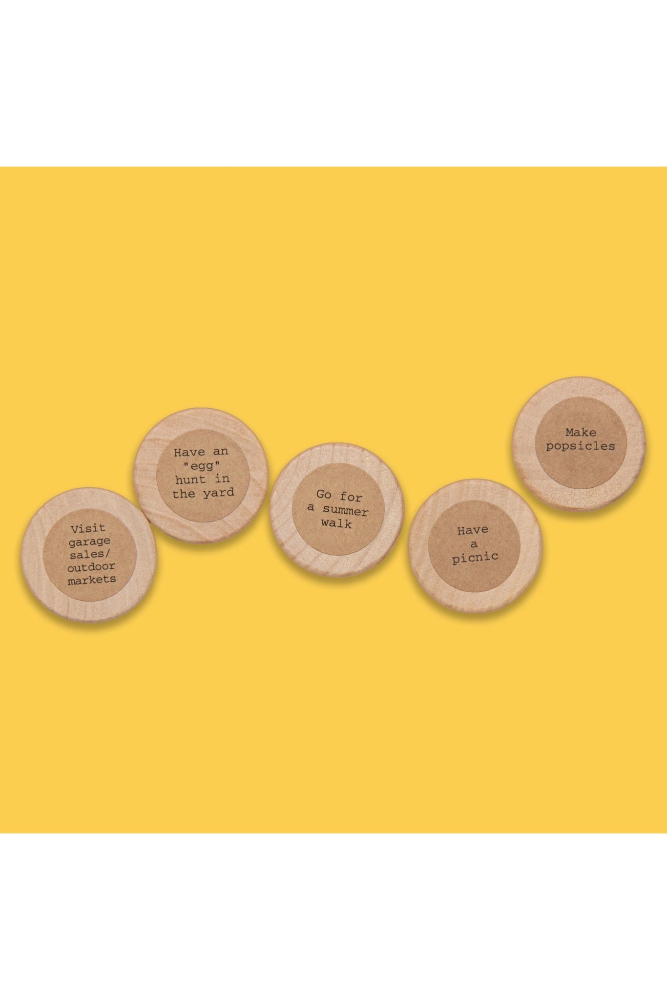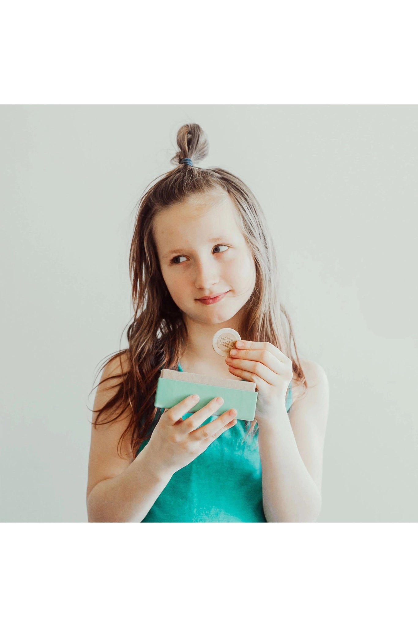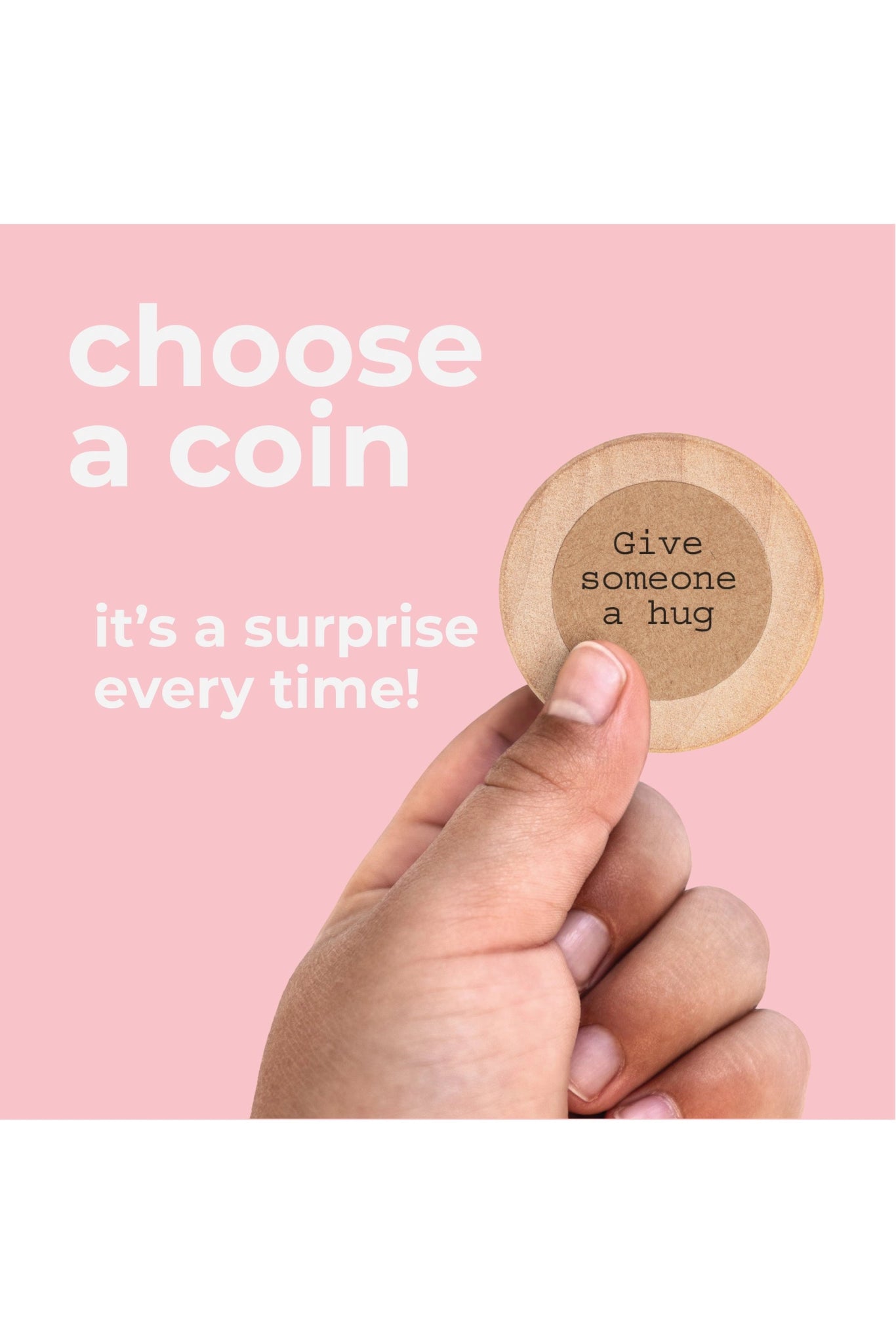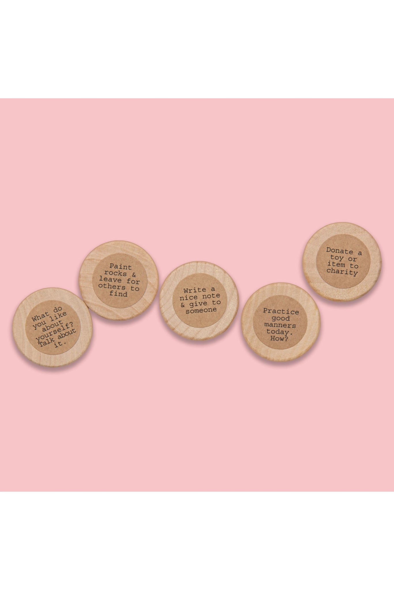 - COINS: 30 natural, wood coins, each measuring 1 ½ inches round