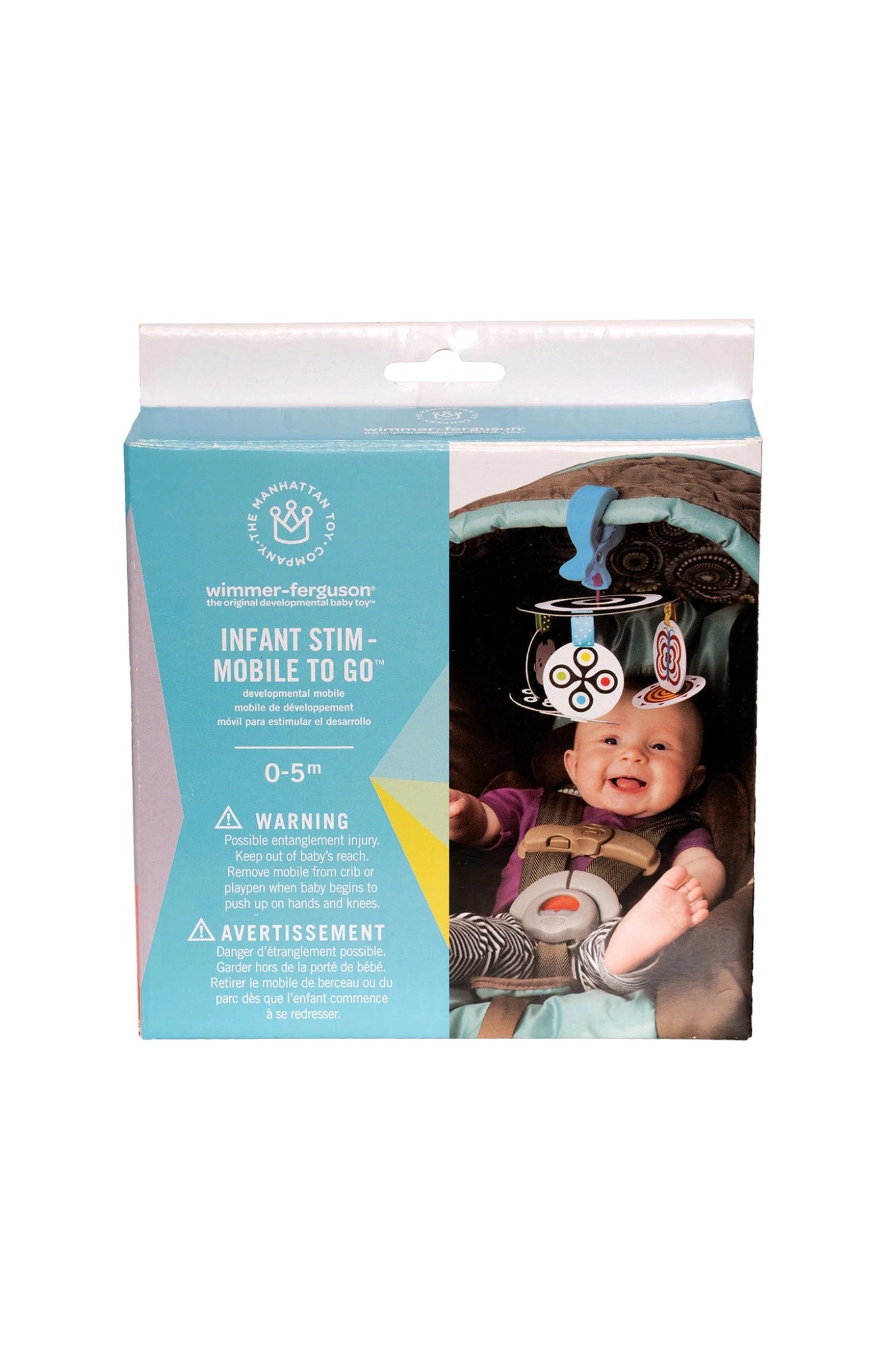 The beloved infant stim-mobile is now available on the go! We've turned the award-winning infant stim-mobile into a compact, easy to attach stroller mobile. This mobile features six reversible cards that contain stimulating high-contrast images that will keep baby entertained where ever they go. Attaches to most strollers with a colorful plastic clamp.