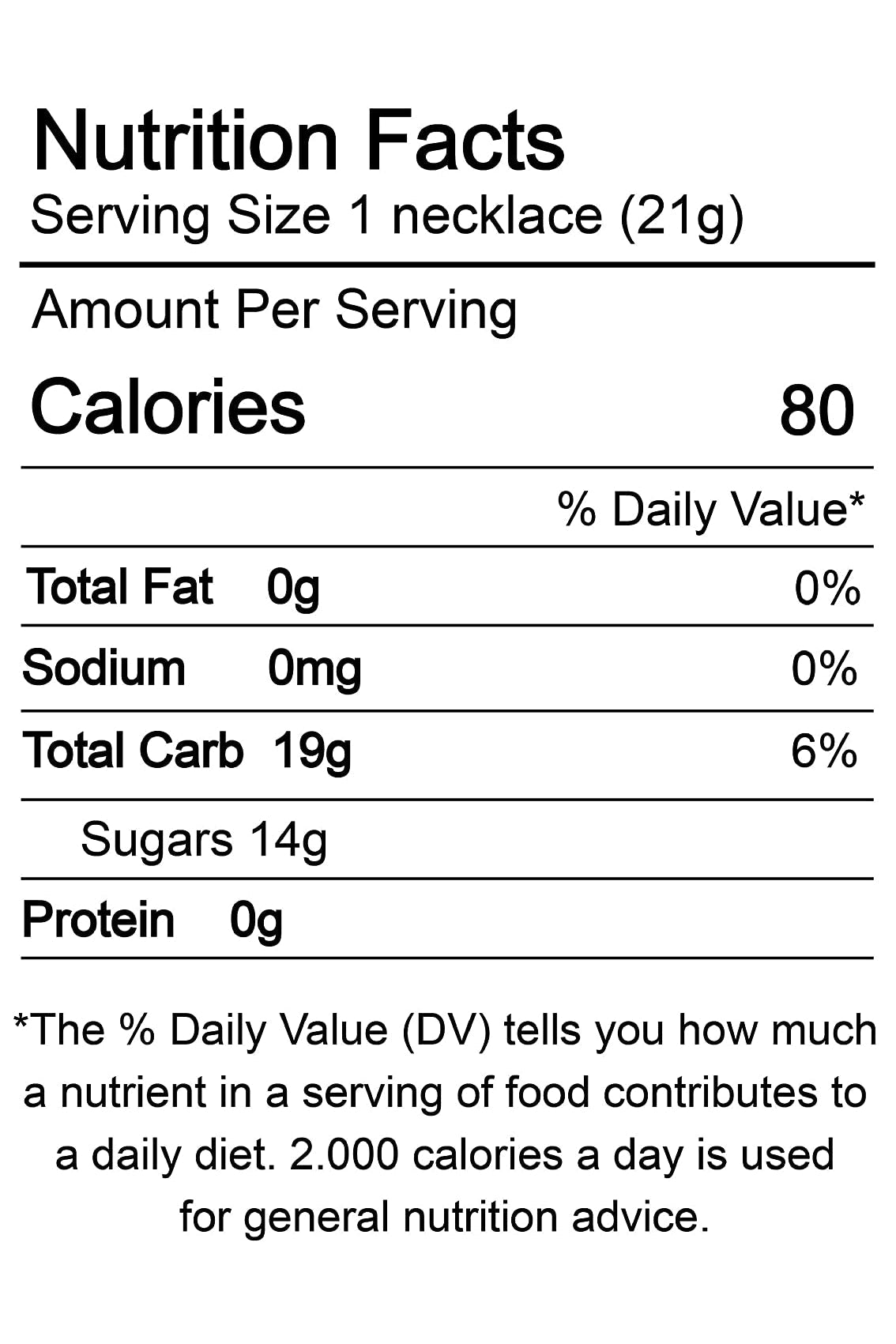 Delicious tart-then-sweet flavor in a fun necklace that kids of all ages love to wear and eat.
