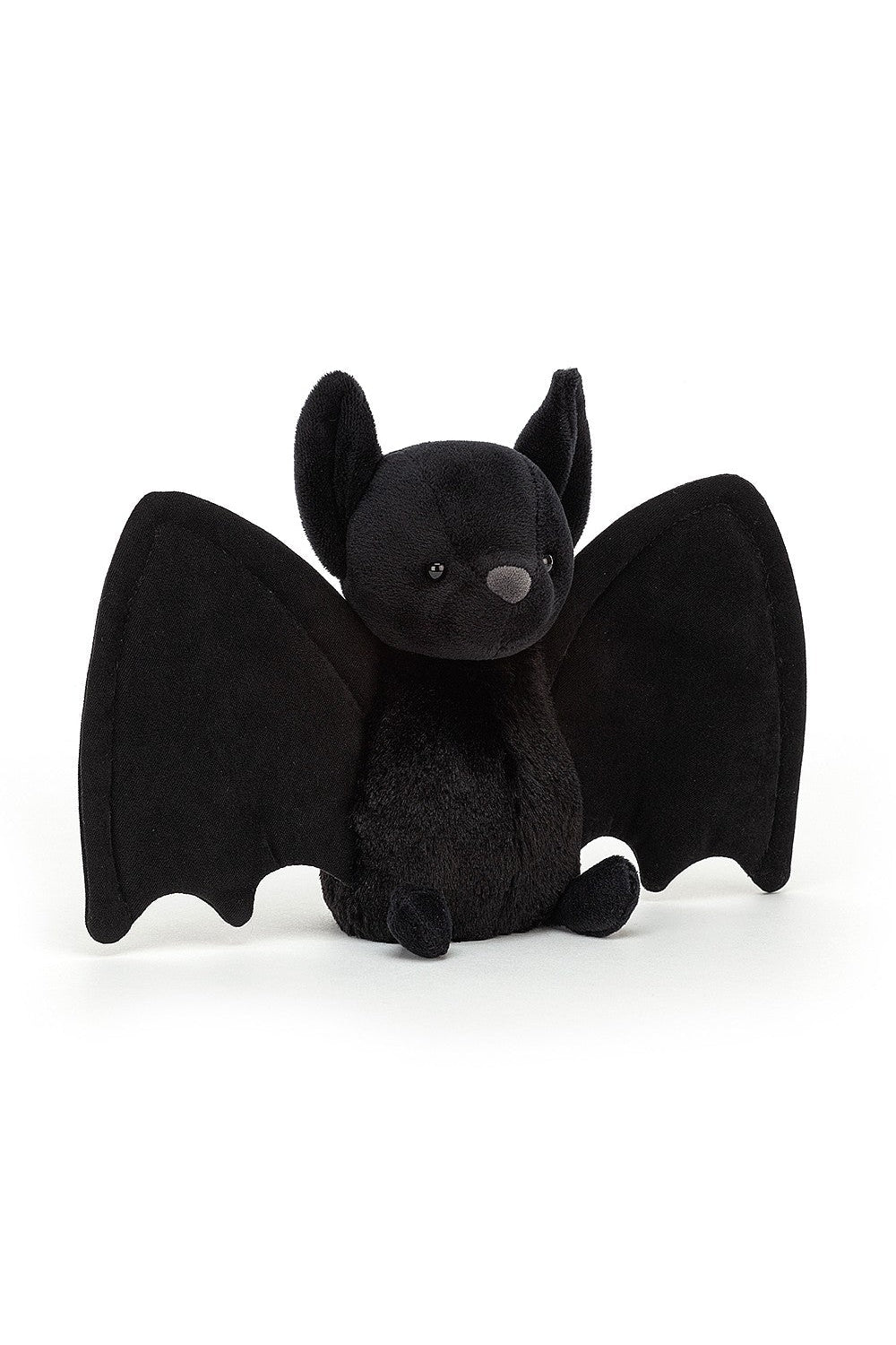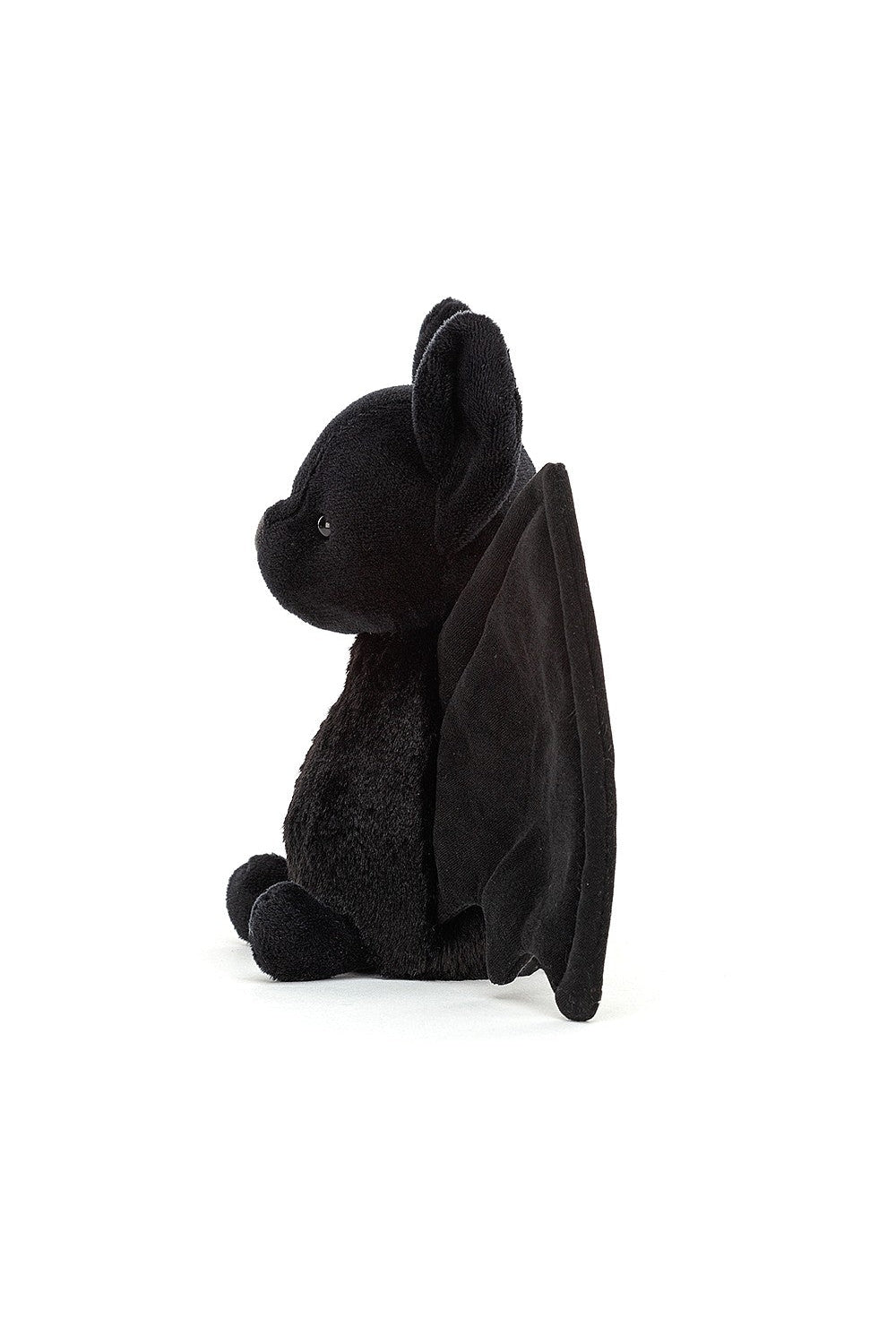 Bewitching Bat is a curious cutie, and loves to flit through the trees at dusk! This treacle treasure has a scrummy round tummy and stretchy-soft ears in inky black fur, as well as fine suedey wings and teeny-tiny feet. Zoom past the moon and listen out for moths!