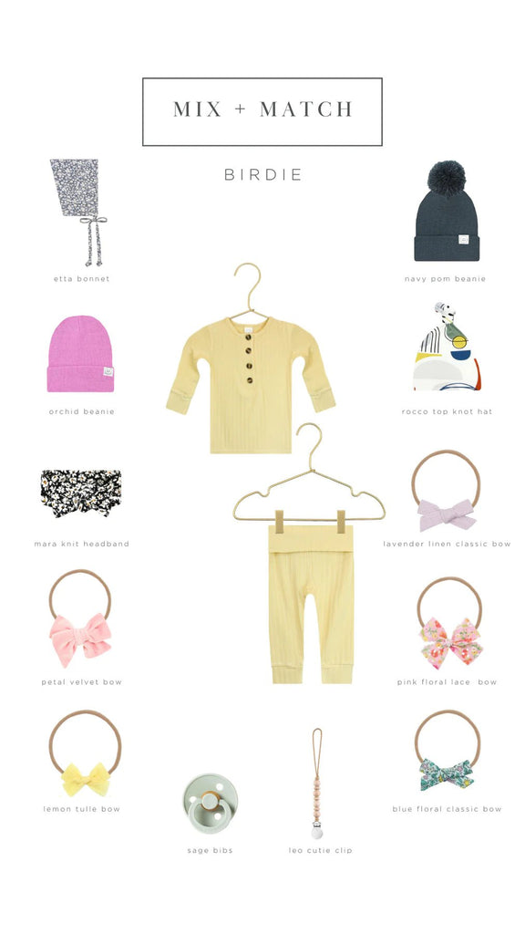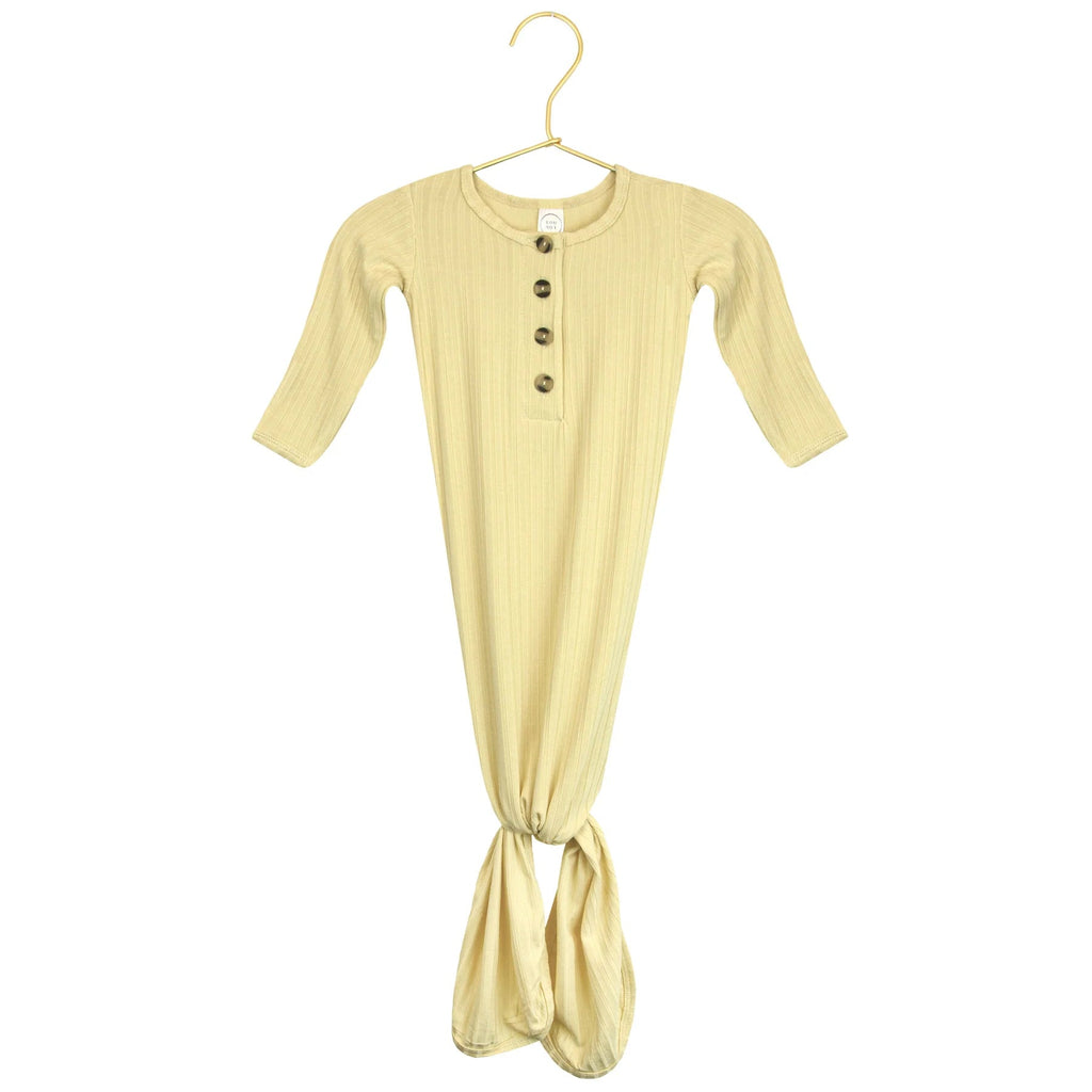 The easiest tie-bottom outfit for day or night. Made for hassle free diaper changes and gentle dressing, I designed this with a button-down front and tie bottom for simple closure (no more snaps at 2am!). Fold over wrist cuffs are the most thoughtful finishing touch.