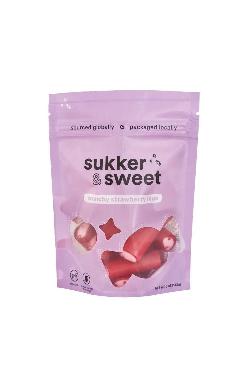 Sweet strawberry licorice shell with soft + creamy center and surprising rock candy crunchy bits in the middle. Layers of textures and flavors!