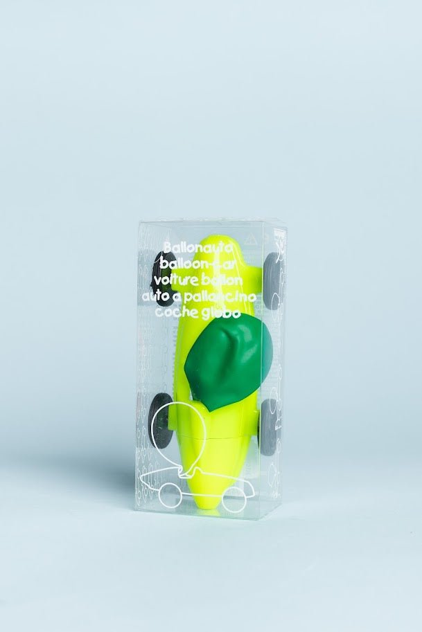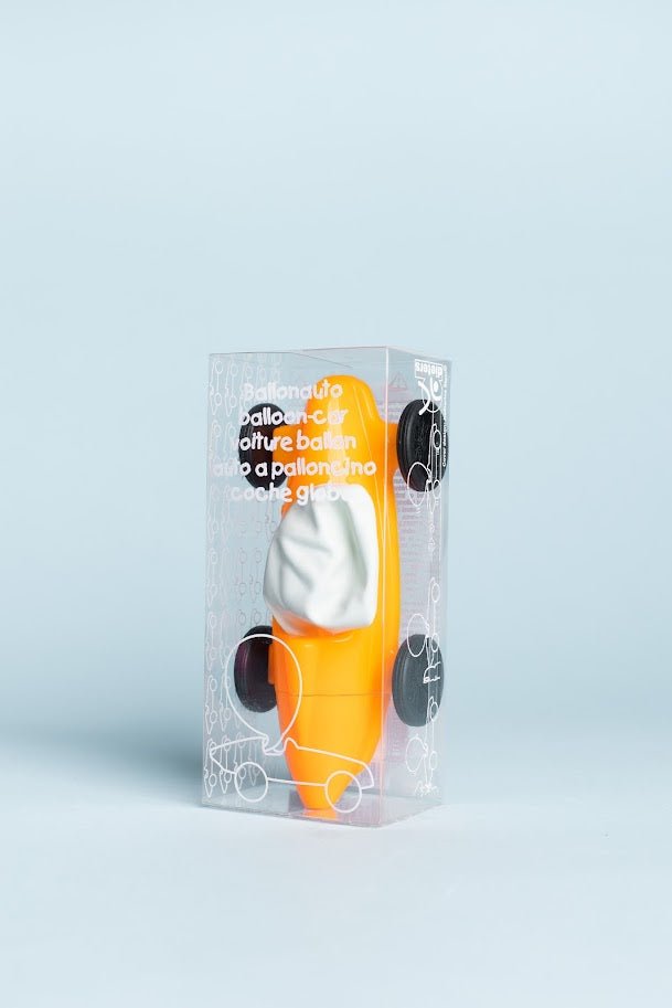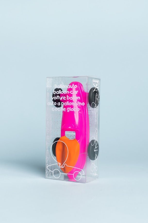 Simply inflate the balloon with the mouthpiece, hold the hole with your finger, put the car on the ground, let go and off you go! Ideal for small competitions on children's birthday parties or as a gift.