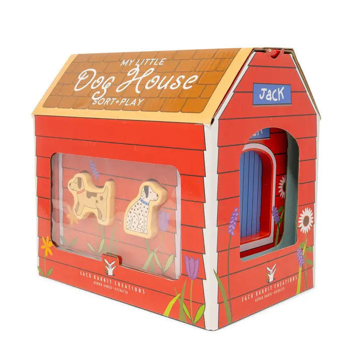Sorter boxes are a classic toy for early childhood development. Motor skills and matching are engaged as little ones sort the chunky play shapes into the adorable dog house. Doghouse roof removes for easy storage of the play pieces, and a sturdy wooden handle lets your toddler grab up their favorite toy and take it on an adventure. FSC-certified woods and all non-toxic paints.