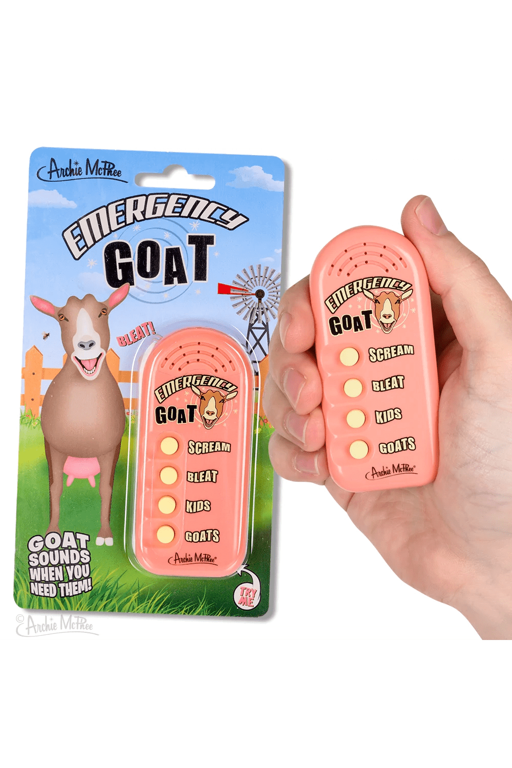 It’s a goat emergency! Turns out GOAT not only stands for Greatest Of All Time but it’s also a popular animal! We all dream of owning our own herd of bleating, horned kids, but that’s not always feasible. This 3½" electronic Emergency Goat noisemaker includes four sounds — scream, bleat, kids and goats. Press the buttons whenever you need some goat in your life. Three LR44 batteries included.