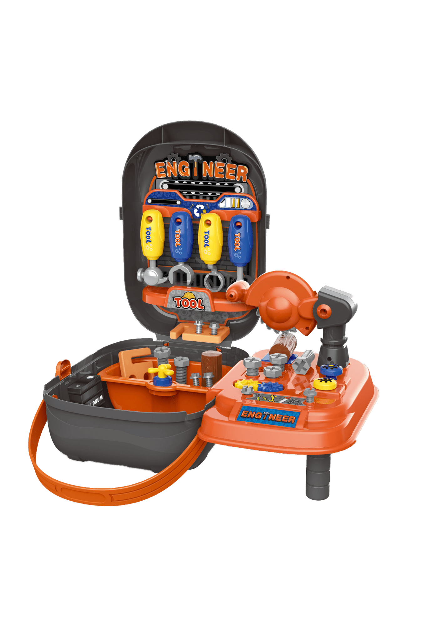 - Decorate decals included. Pieces include: Workbench, Circular Saw, Tool Bin, Tool Rack, Screws, Nuts, Bolts, Wood Planks, Fasteners, Hammer, Wrench, Circular Wrench, Screwdriver, Oil Drum, Assembly Piecs, Decorative Decals Material: PP Plastic Packaging: Tote & Wrap Label