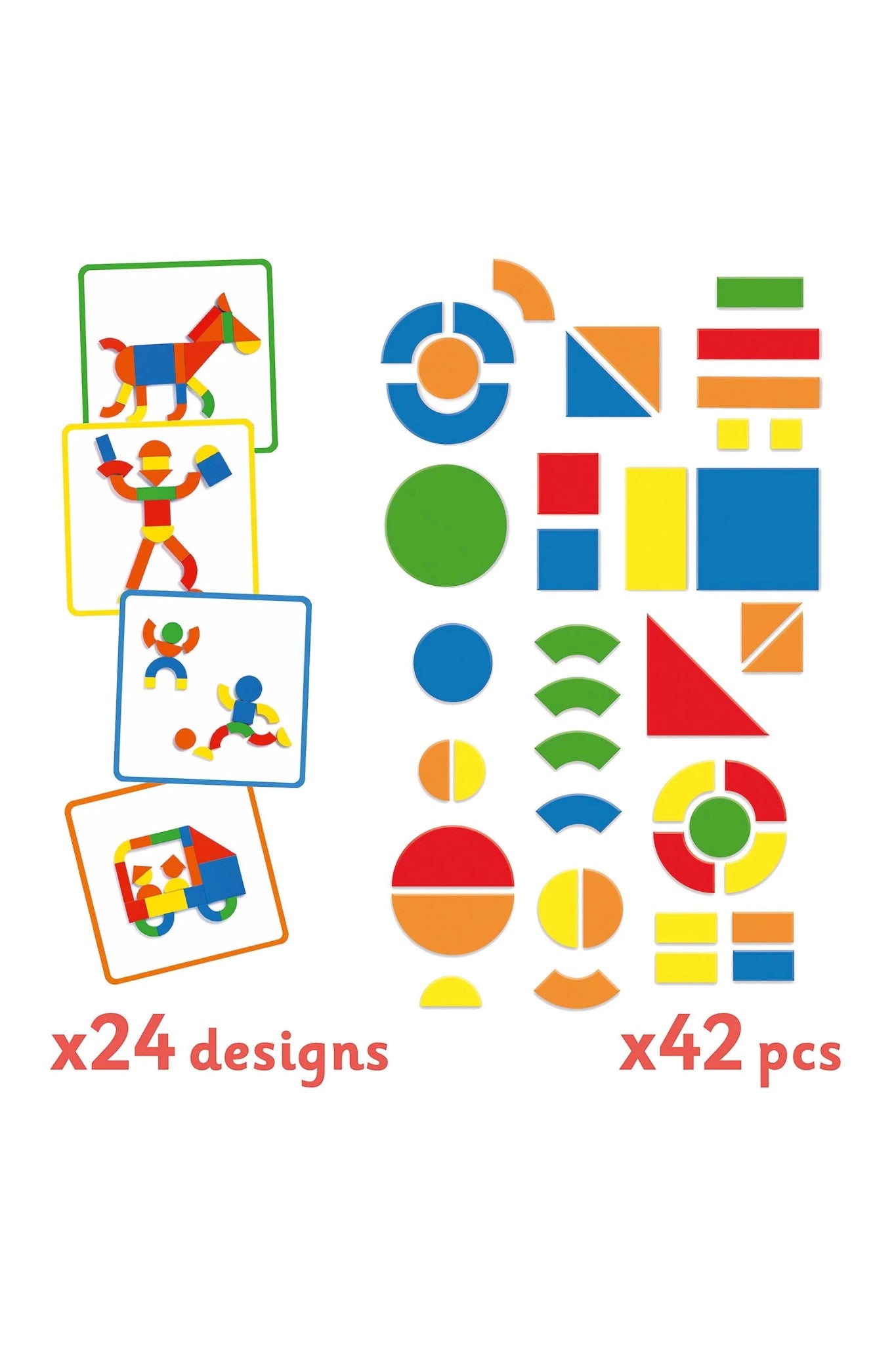 - Contents: 1 wooden box (11.8" x 11.8"), 42 magnetic wooden pieces and 24 model cards.
