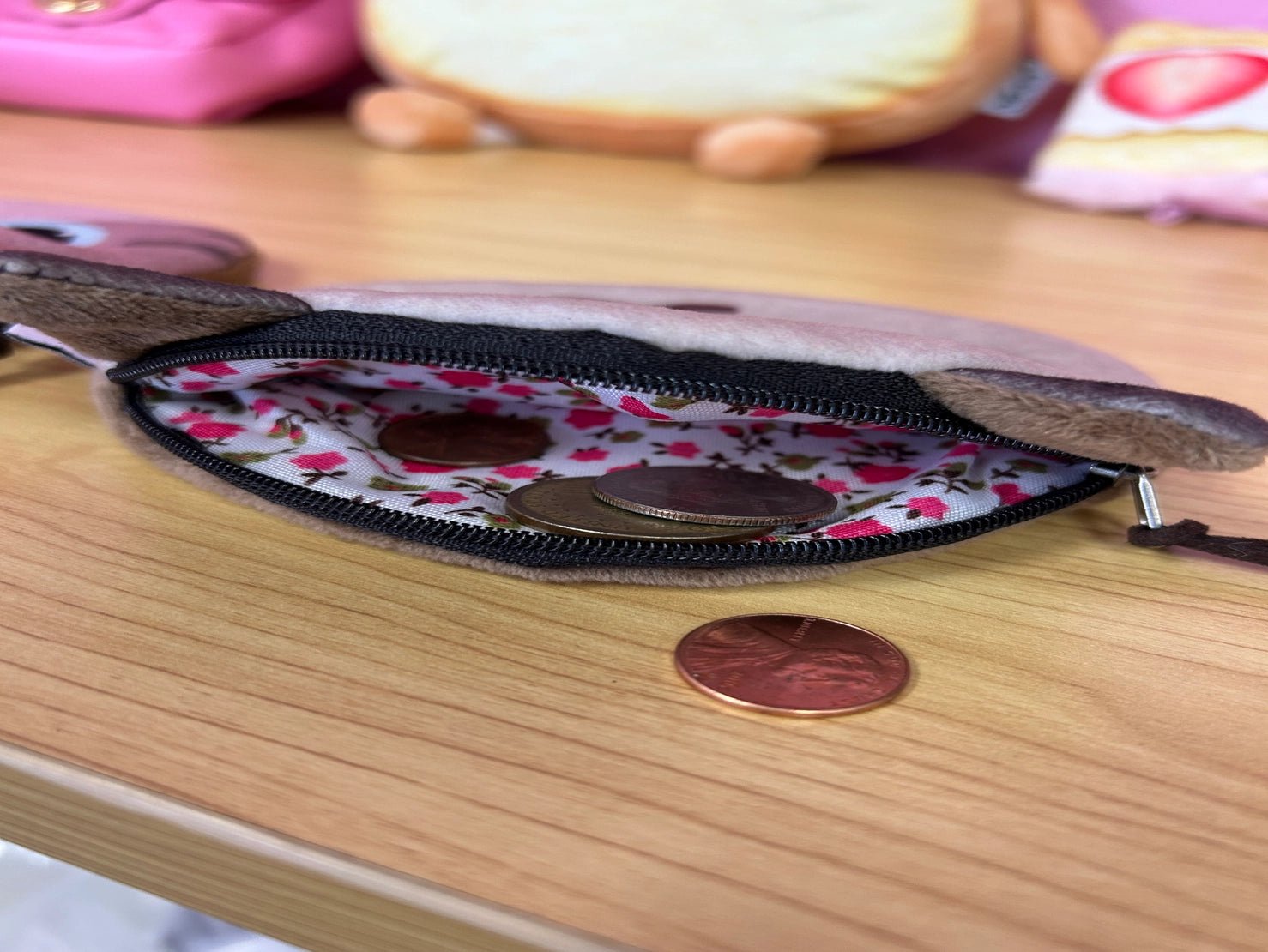 Meow-some! This super adorable kitty coin pouch features soft furry exterior, zipper closure, and flowery print design on the inside. Keeps your coins safe and cozy.