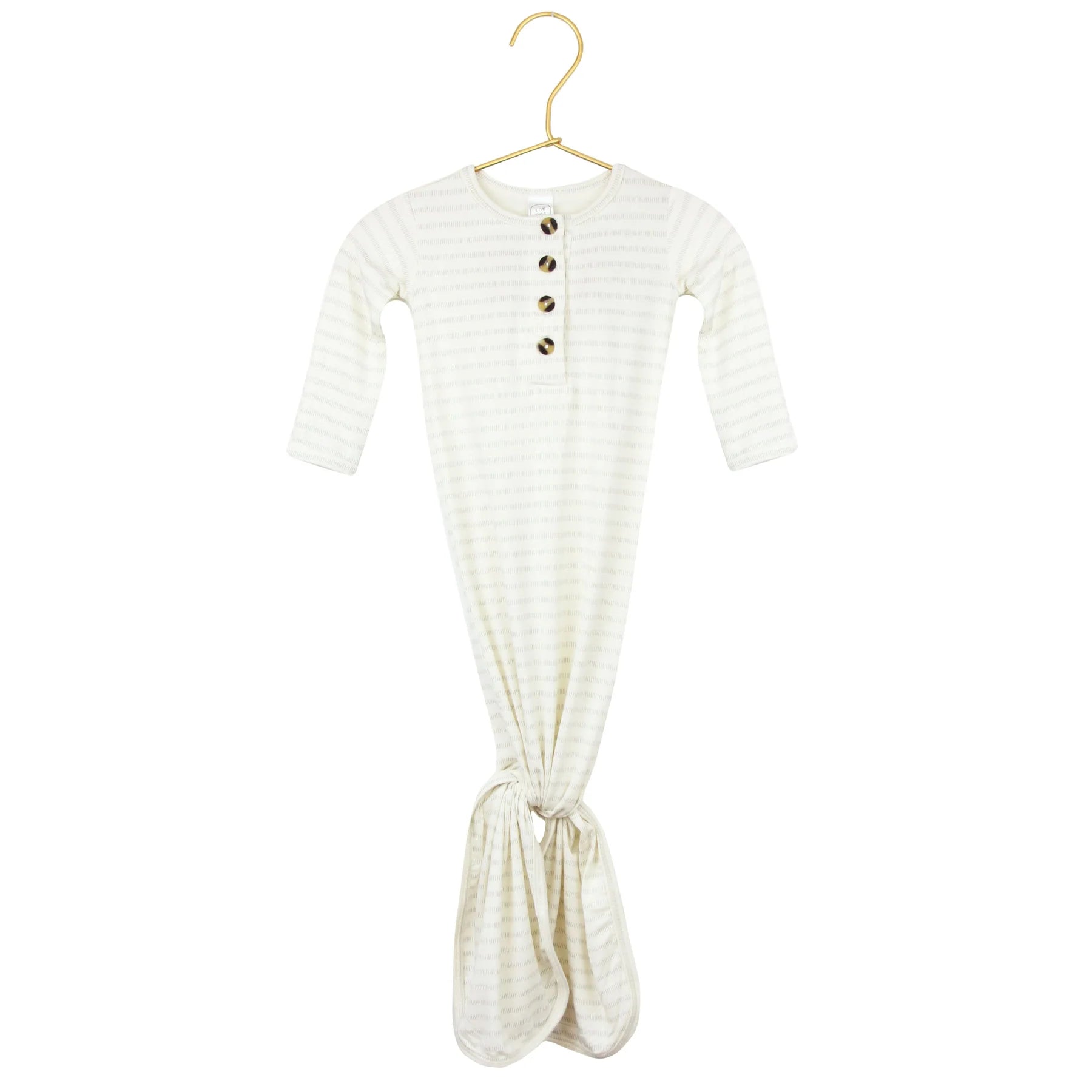 The easiest tie-bottom outfit for day or night. Made for hassle free diaper changes and gentle dressing, I designed this with a button-down front and tie bottom for simple closure (no more snaps at 2am!). Fold over wrist cuffs are the most thoughtful finishing touch.