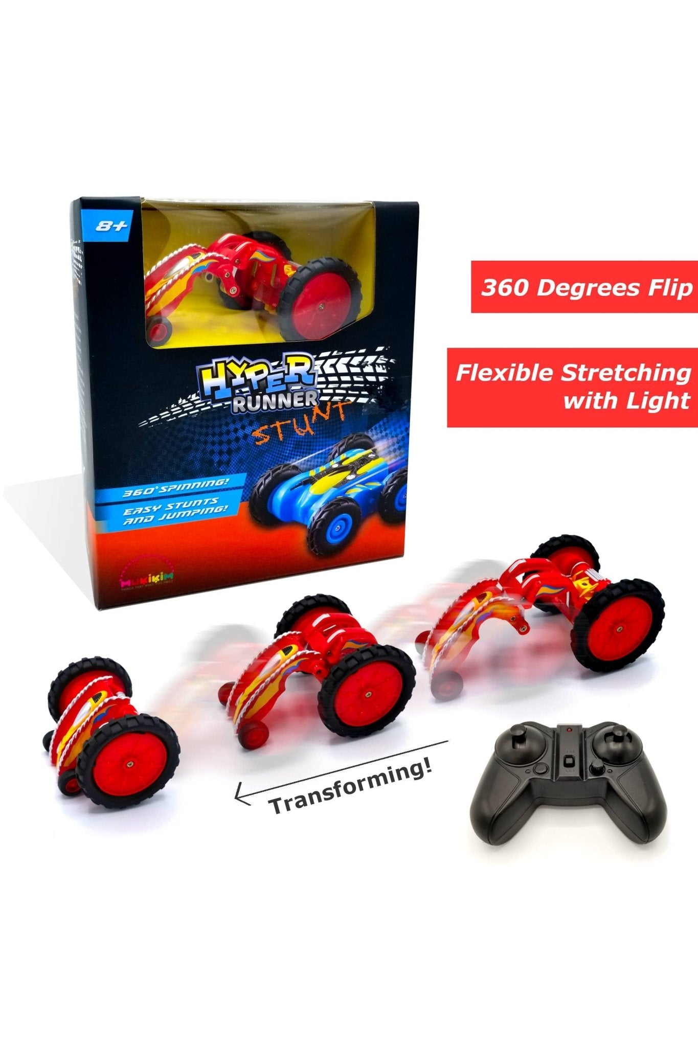 Hyper Runner Stunt Red R/C is a remote control car can do high-speed zip, whip, and spin in any direction to create cool tricks! Hyper Runner stunt red is a double-sided driving car where you can do special stunts such as 360 Degree flip and double-sided running with colorful power light
