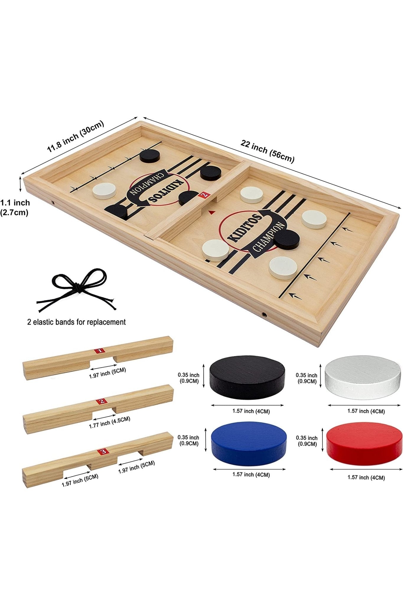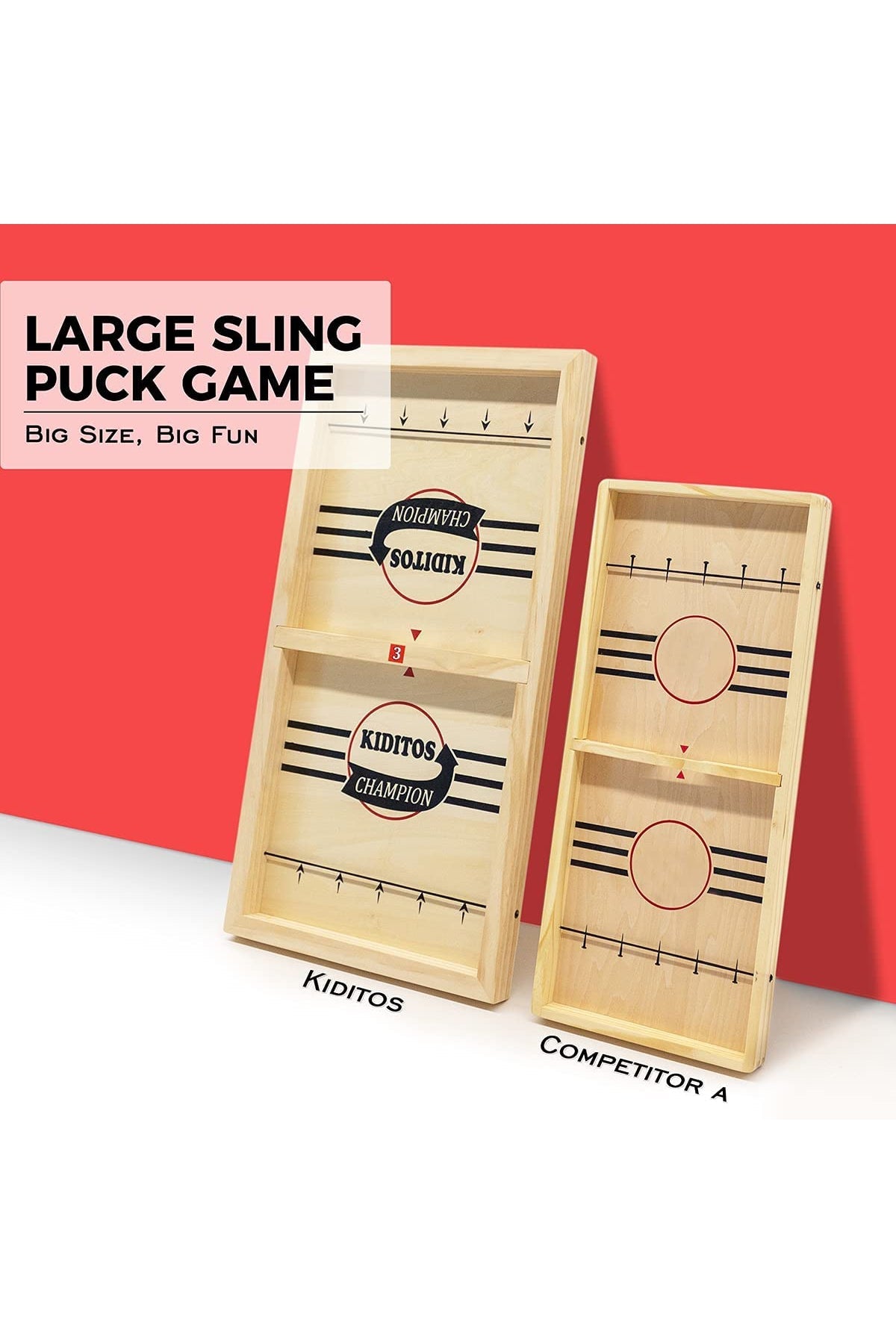 Simple Tabletop Fun!  Kiditos’ sling puck game is a carefully crafted foosball winner board game for kids and adults. You can play this tournament-style game at home, the office, a birthday party, a reunion, or at your regular game night. This fast action game requires intelligence and dexterity, and it’s one of those rare games that any group of people can enjoy together.
