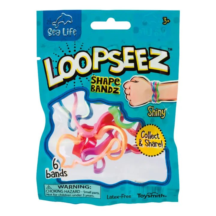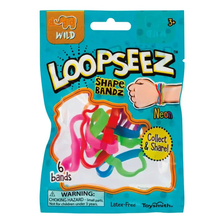 Jump on the Bandz wagon and stock up on the extremely popular Loopseez wearable shape wrist bands. This assortment of collectible, wearable, and shareable latex-free bands come in 3 unique styles. Includes Sea Life, Glitter, and Wild Animal themes with assorted shapes and colors. Some of these bands are also glittery for added fun! Each package includes 6 stretchy bands with assorted shapes and colors.