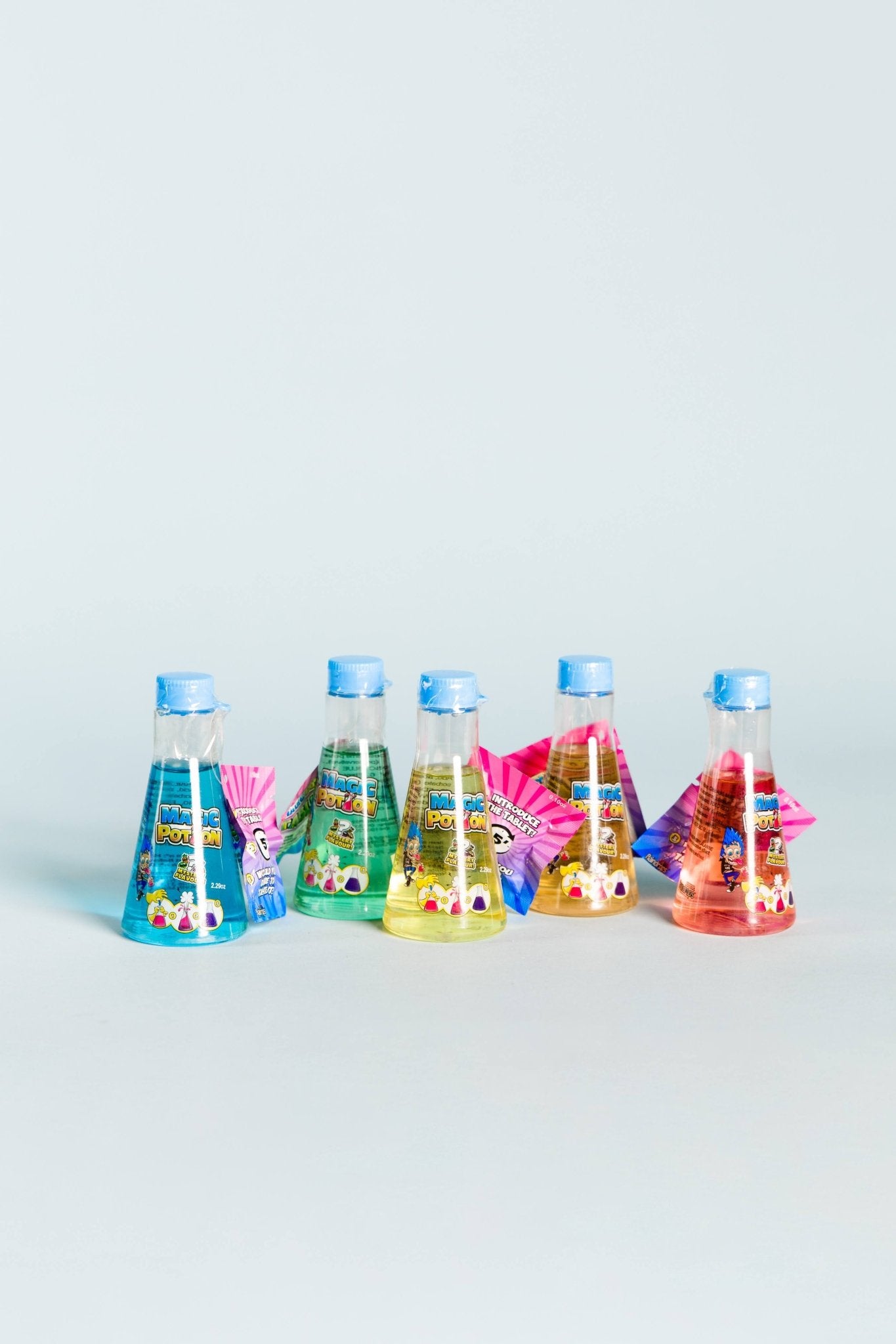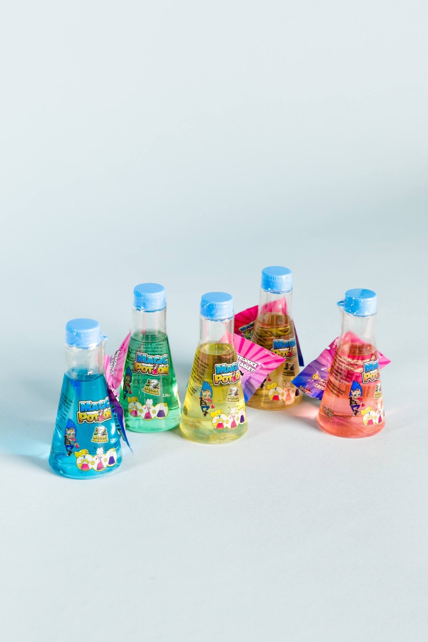 Electro Sour Magic Potion lets customers play mad scientist while enjoying sour candy flavors. When the accompanying candy tablet is dropped in the "beaker" of candy liquid, the liquid candy changes color and creates a mystery sour flavor in seconds that's sure to keep them guessing.