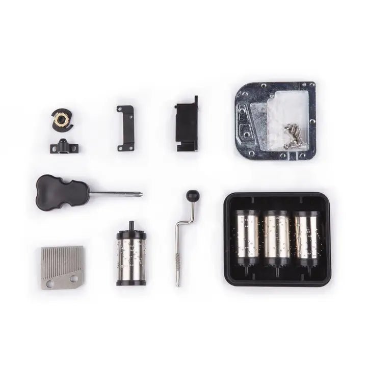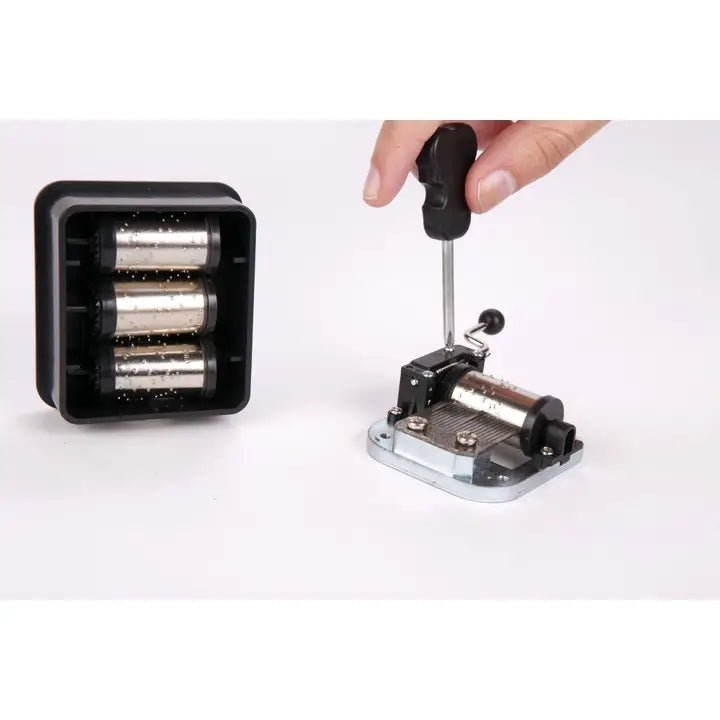 With the violin shaped screwdriver, you put the music box together in no time. And if you want to change the song, you simply unscrew the parts that hold the cylinder in place and replace it! The supplied soundbox makes the music box sound great.