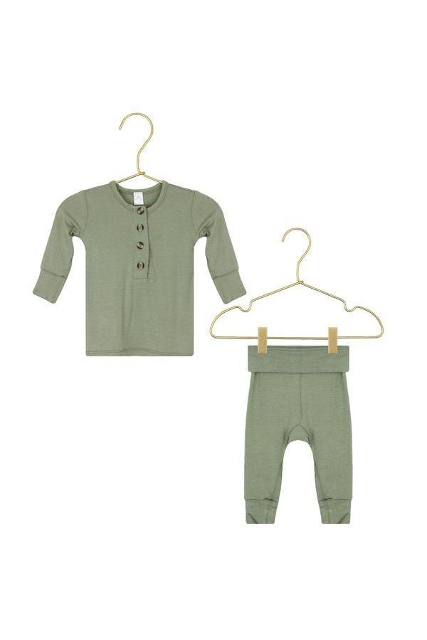 Good things come in pairs and our tops + bottoms are no exception. They’re made from our signature silky-soft material for a stretchy, comfy fit with functional buttons and fold-over waistband for room to grow (or to wear high-waisted).