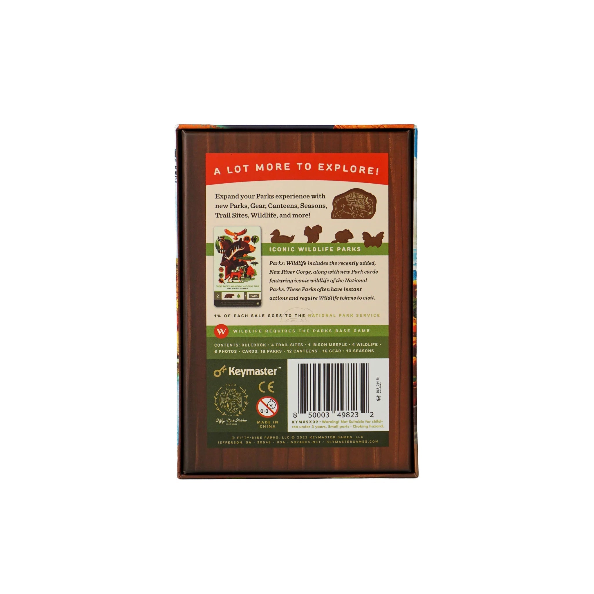 Expand the award-winning game Parks with Parks: Wildlife! Grab your binoculars and prepare for even more animal sightings at Iconic Wildlife Parks, featuring all-new artwork from Tom Whalen and the Fifty-Nine Parks Print Series, and the newest national park addition, New River Gorge. This expansion is the MORE expansion. Get ready for new trail sites, fresh canteens, new gear, and more season cards.