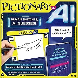 Get ready for an innovative, high-tech twist to game night with Pictionary Vs. AI. What is known and loved about Pictionary is elevated to a whole new level when it's human sketches pitted against AI guesses. But the real points are earned by predicting which sketches the AI will guess correctly. Pictionary Vs. AI is packed with hilarity and surprises, making it a perfect board game for family night!