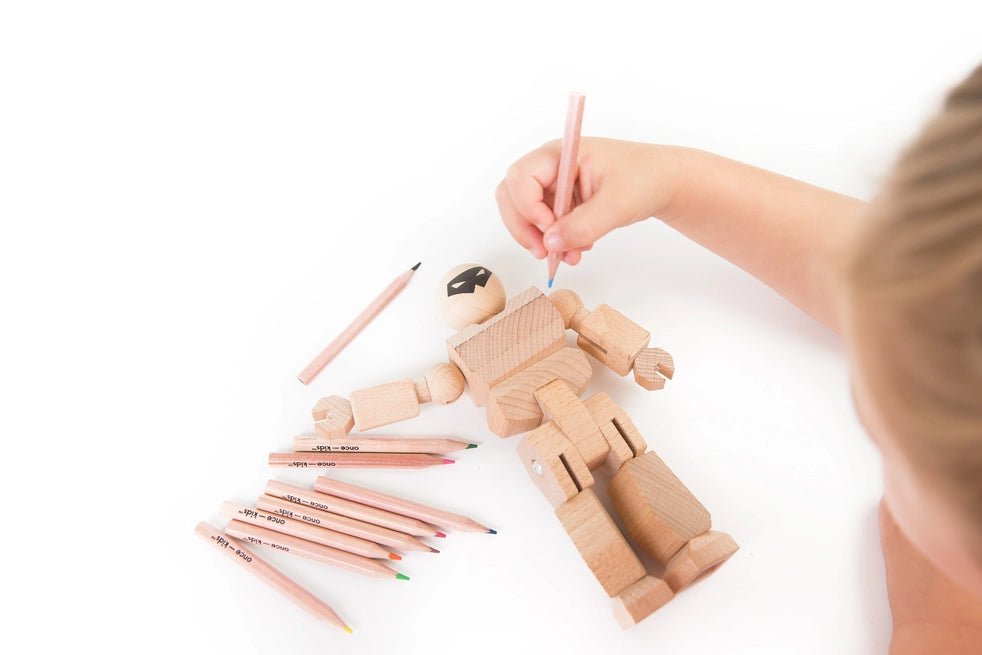 - Features: Wooden articulated action figure with blank surfaces for coloring.