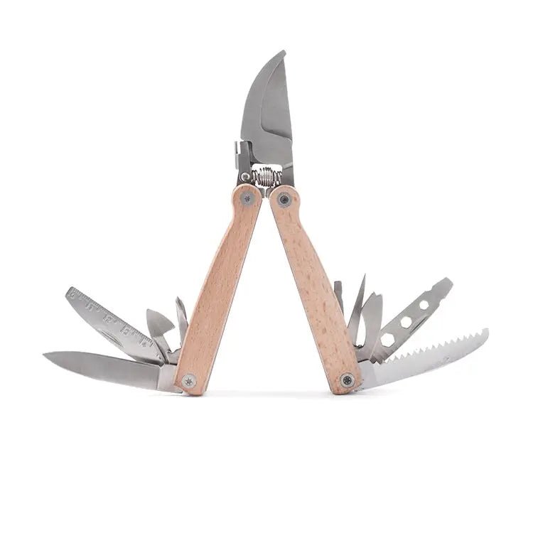 This 12-in-1 pocket-sized pruner is essential around the garden. Unfold this handsome beechwood tool for pruning garden plants, and use the remaining tools for household tasks.