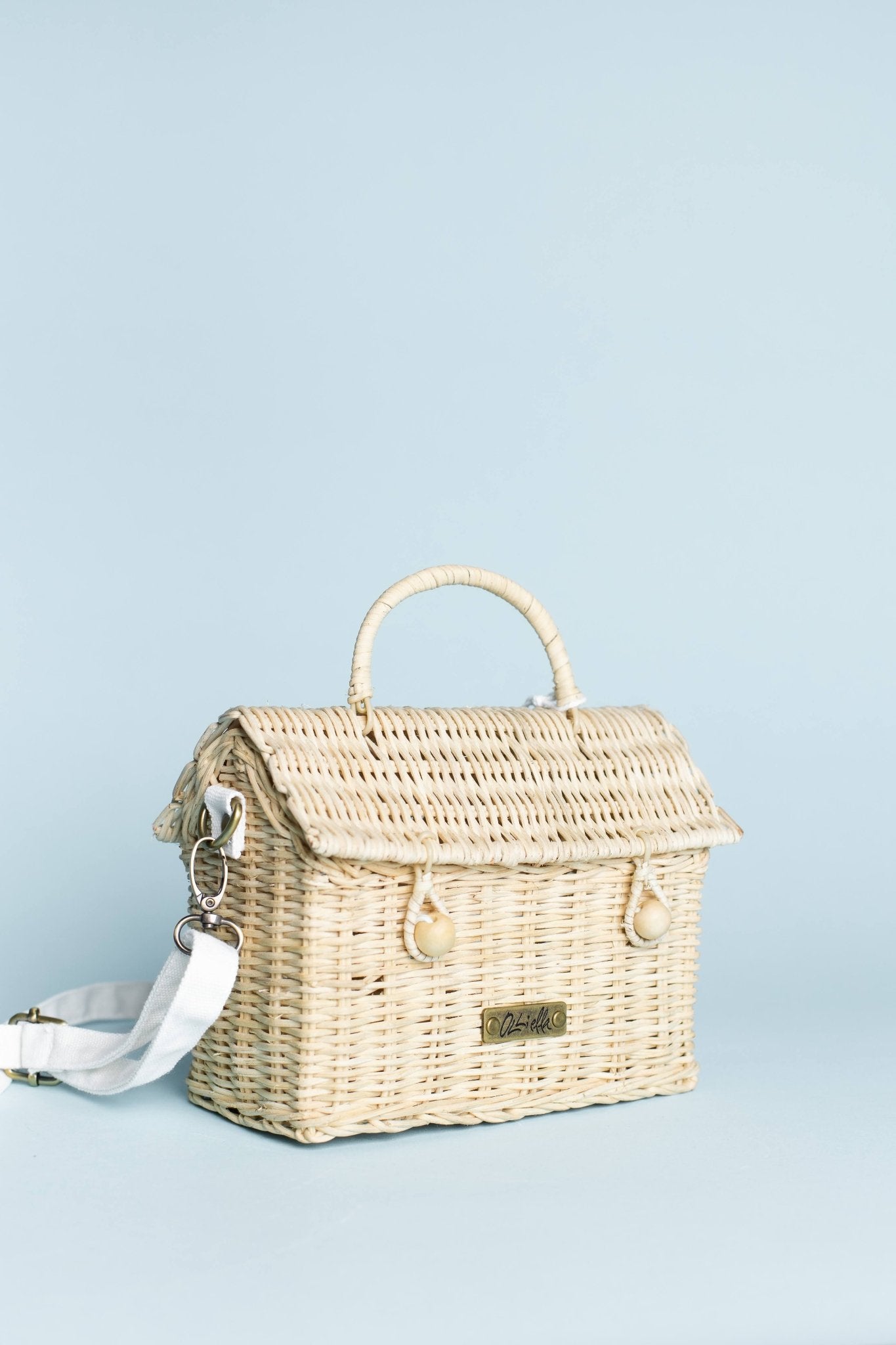 • Handmade from 100% natural Rattan, the Casa Bag opens at the roof and door for easy storage of all their tiny trinkets.