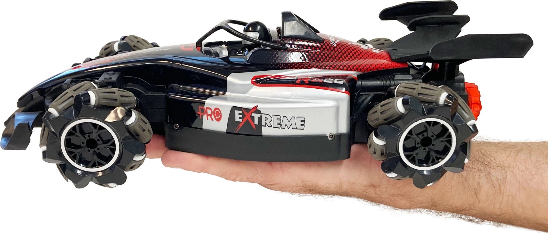 Utilizing the latest in omnidirectional wheel technology, the Slide Rider is not only capable of traditional left, right, forward and reverse maneuvers, but also 360 degree spinning and lateral side drifting. Showcasing a water vapor mist exhaust feature, along with realistic sound and light effects, the Slide Rider provides an exciting one-of-a-kind driving experience.