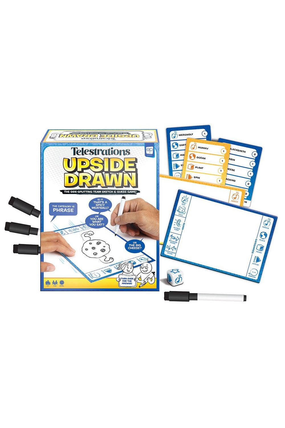 This take on the award winning Telestrations game gives a whole new meaning to laugh out loud miscommunication. Telestrations®: Upside Drawn puts a teamwork spin on “The Telephone Game Sketched Out” by putting the pen in one person’s hand, and control of the board in another’s!