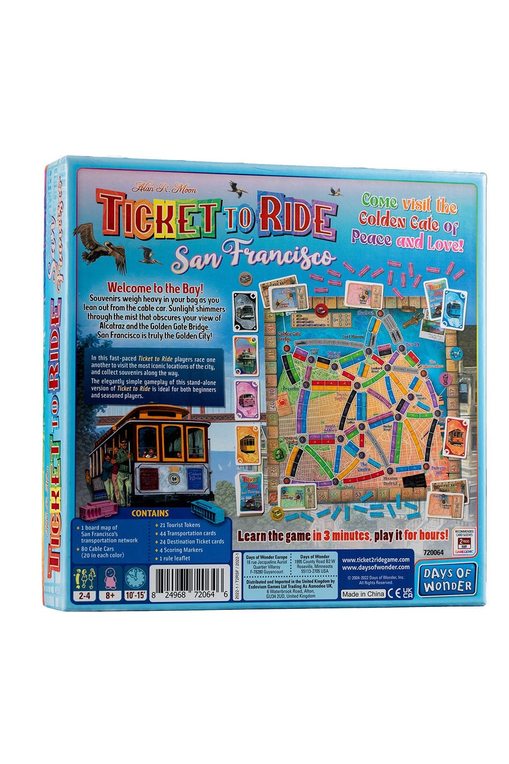 “Enjoy a nice walk along the Embarcadero and hop on an old cable car for a ride toward Fisherman's Wharf. Soon, the Golden Gate Bridge will rise in front of you... Welcome to the City by the Bay! Continuing the successful series of the City games, Ticket to Ride San Francisco embarks players in a fun and fast visit of one the world most popular city.”